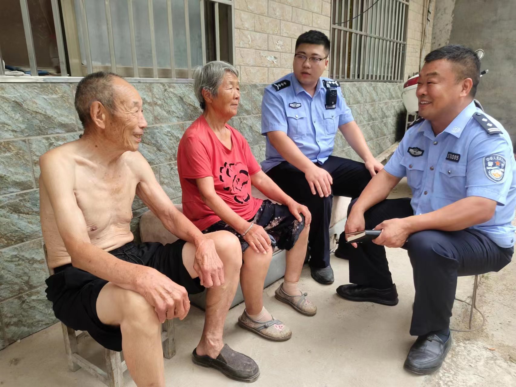7月26日14时许,村民见了正在烈日下巡逻的民警郭现成纷纷心疼得往空调屋里拽。