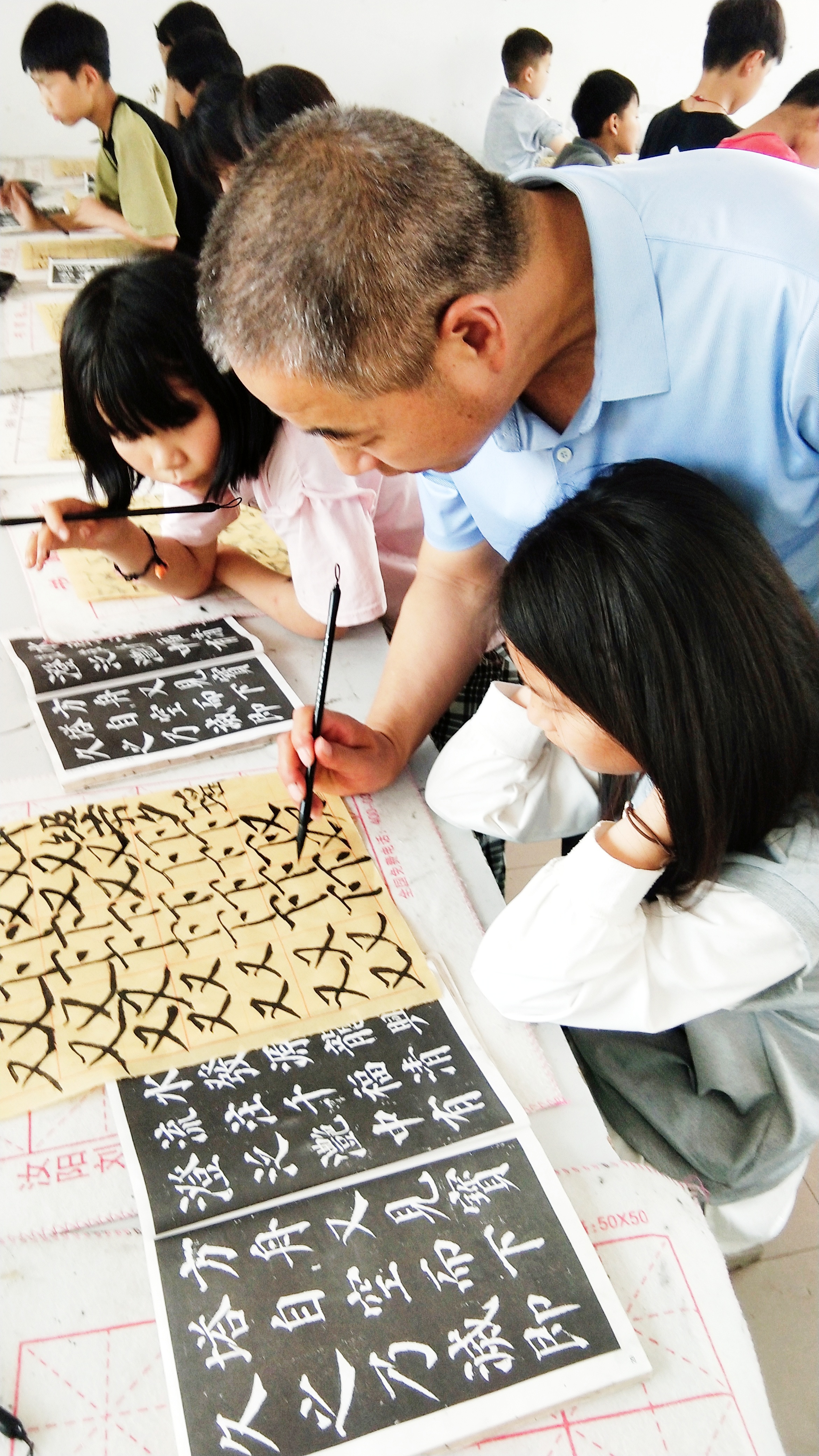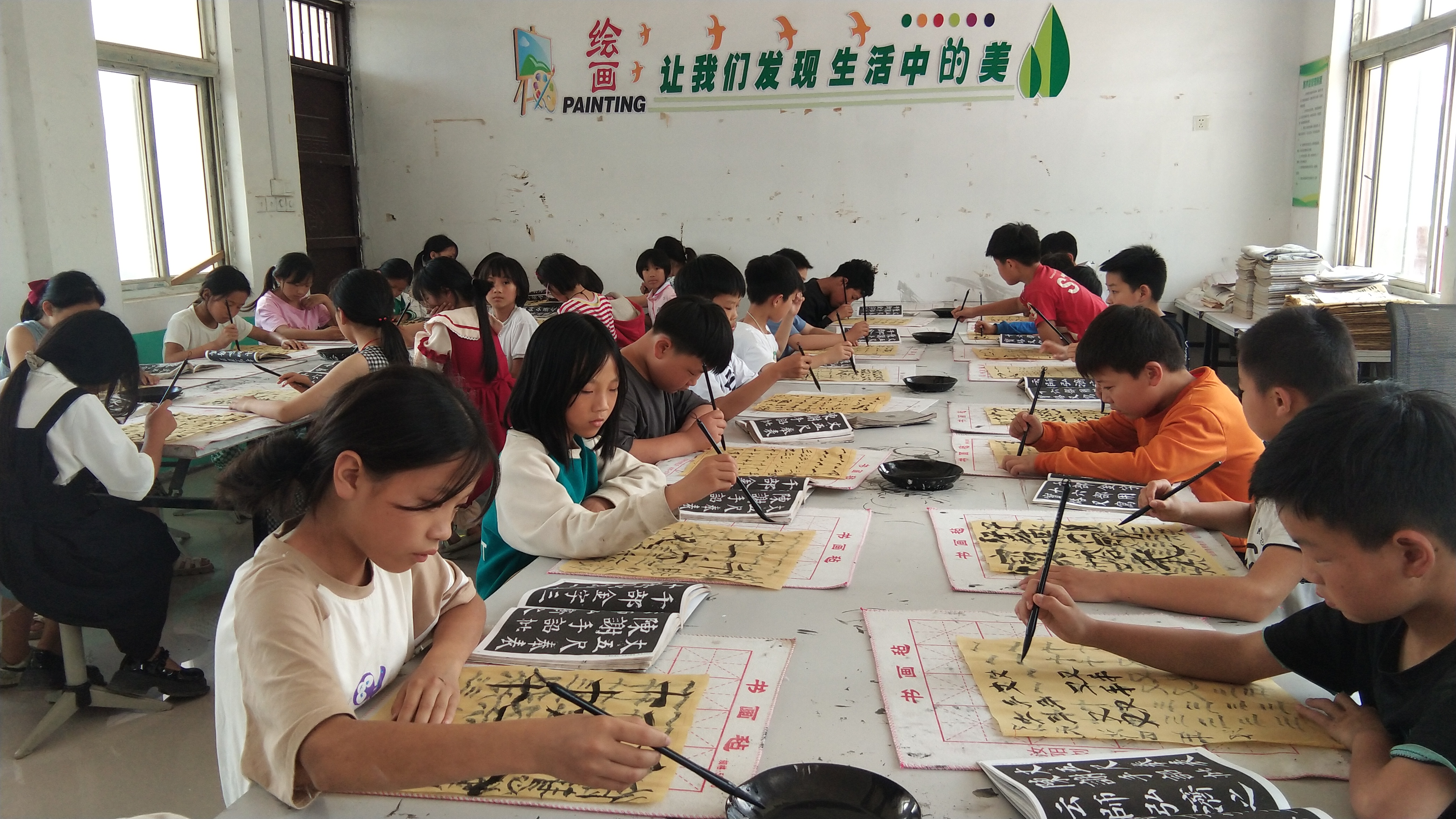 “这两个笔画要连贯起来才好看,字的结构要写舒展一些……”7月26日,在郸城县南丰镇中心小学少年宫,书法辅导老师孟春给学生讲授书写要领。这是郸城县乡村学校少年宫活动中的一个缩影。