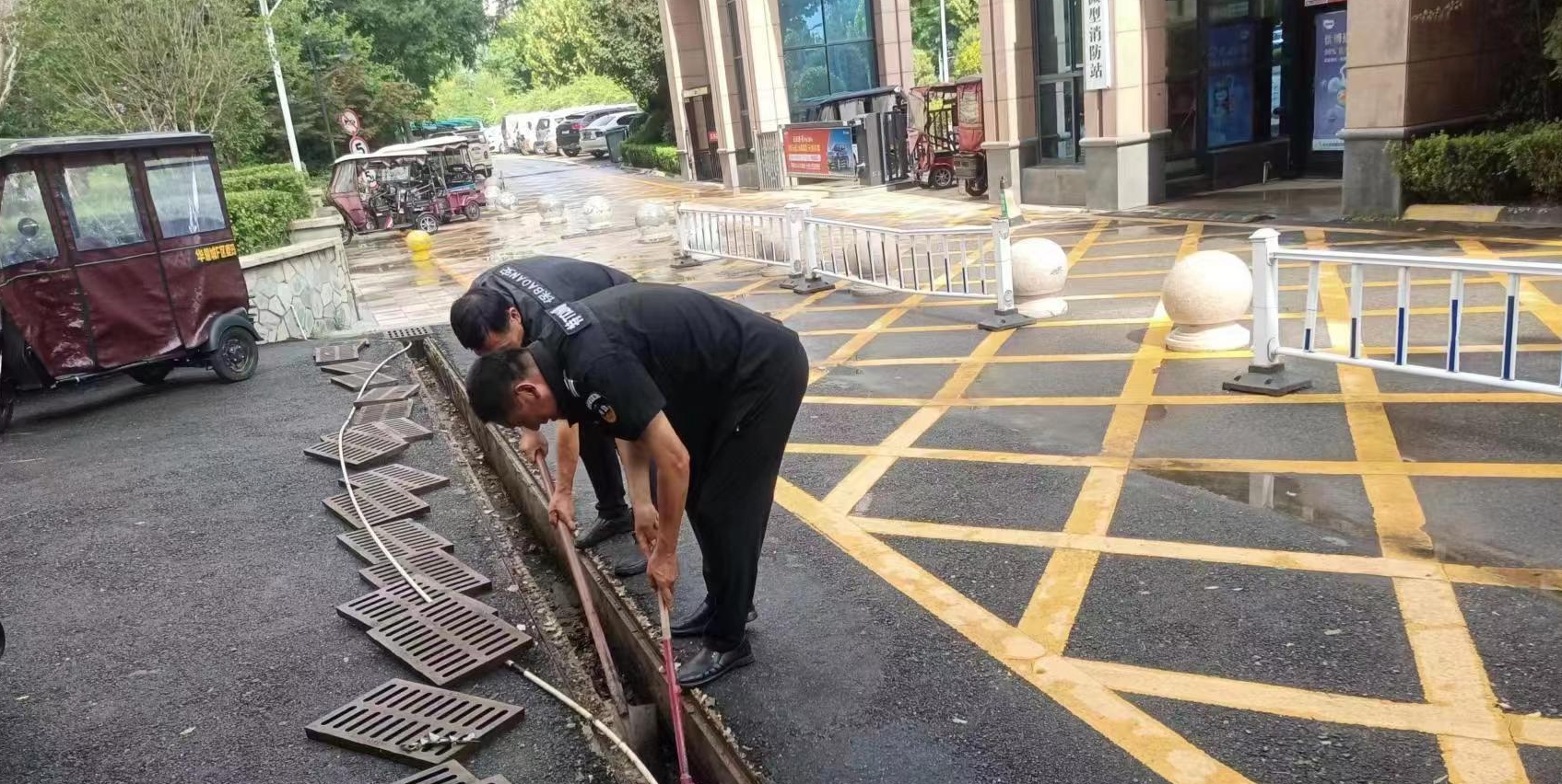 在文昌办事处天明社区,工作人员及网格员、党员志愿者等全面排查社区隐患,通过微信网格群、居民群,提醒社区居民做好应对短时强降水、短时大风等强对流天气应对工作,联合物业对社区沙袋、挡水板等重要防汛物资安排情况进行现场查看,对小区地下停车场的排水情况及车库自动抽水泵进行检查,并清理干净雨水管道,全力筑牢安全防线。“小区内的地下停车场约有4000余平方,我们提前准备好了沙袋和挡水板,如果雨水倒灌会及时进行封堵。停车场有自动抽水泵112个,可以自动感应雨情,及时排出积水。”该社区党支部书记陈有杰说。