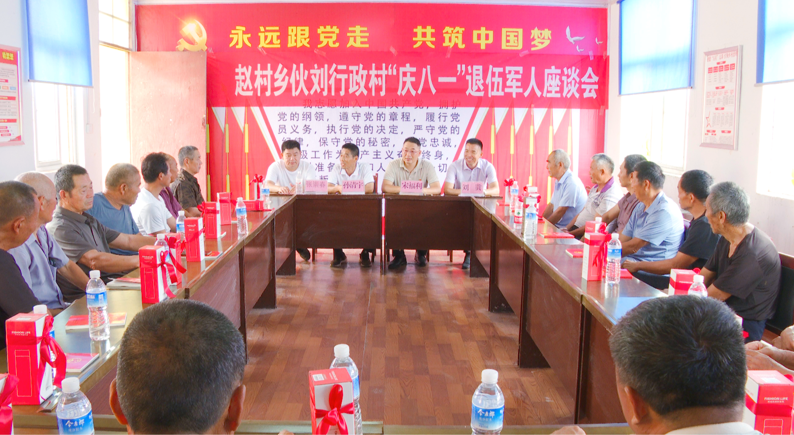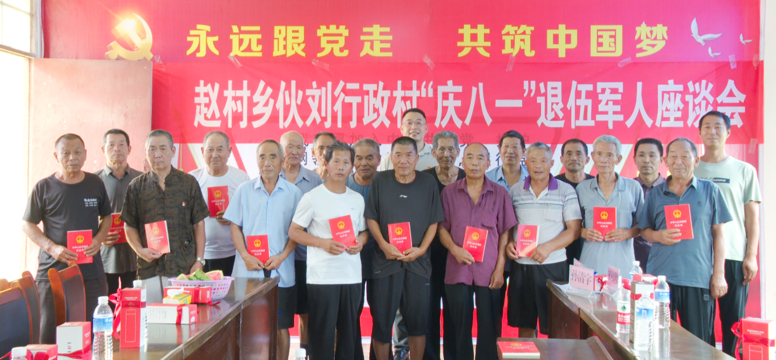 为庆祝中国人民解放军建军96周年,营造拥军优属的浓厚社会氛围,8月1日上午,鹿邑县赵村乡西南管区6个行政村联合在伙刘行政村党群服务中心召开庆“八一”退役军人座谈会,向到会的40名退役军人致以诚挚问候和节日祝福。