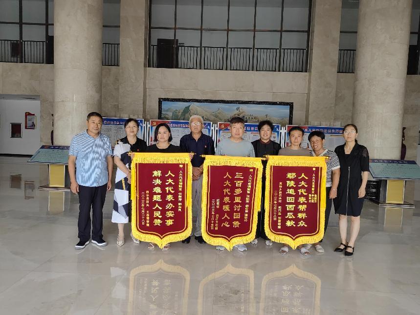 8月1日,西华县人大代表驻法院调解监督室,因案件调解成功率高,深受人民群众的称赞,收到人民群众送来的三面锦旗。