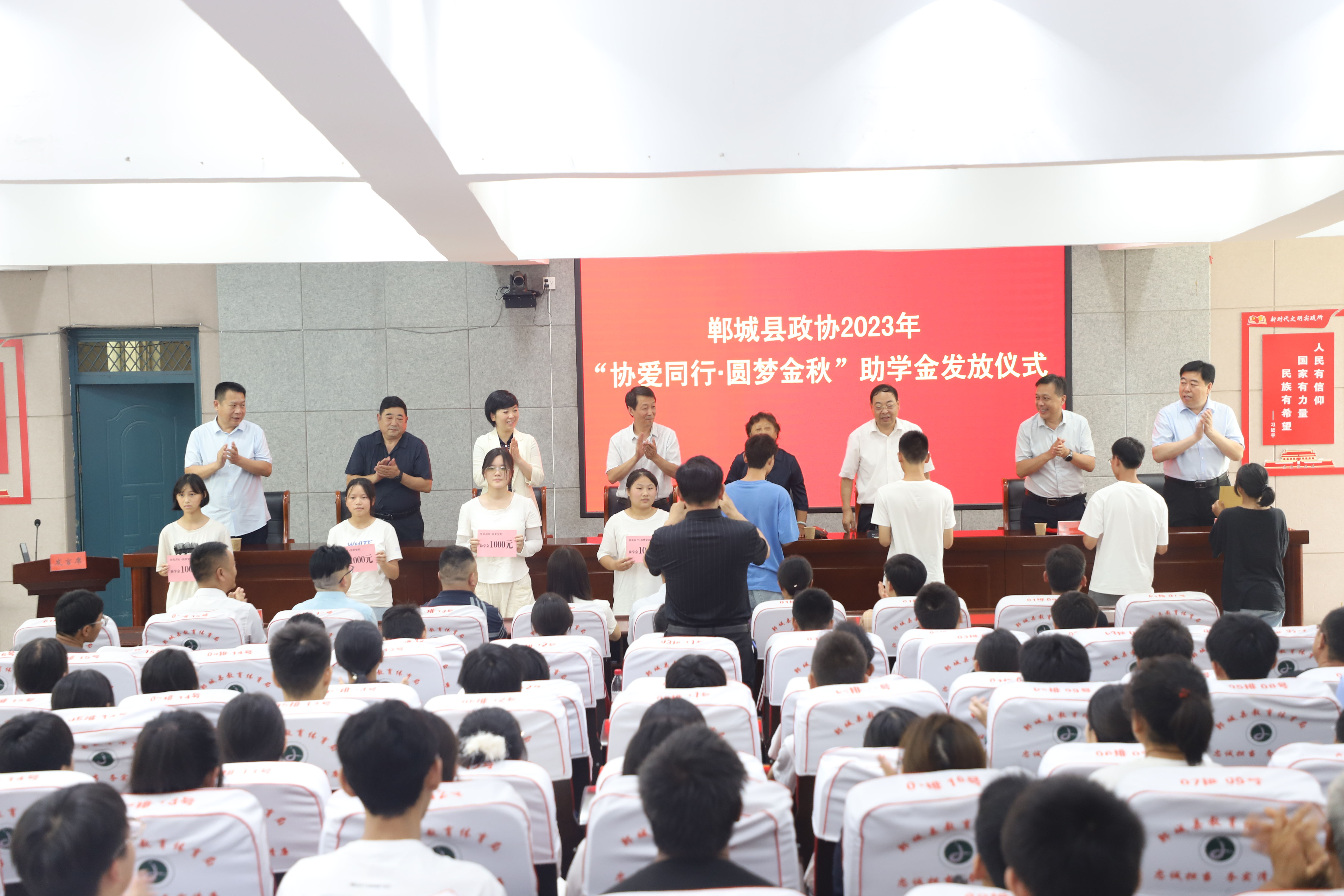 为认真学习贯彻落实党的二十大精神,促进郸城县教育强县建设和经济社会发展,助力困难学子教育圆梦。8月2日上午,郸城县政协举行2023年“协爱同行 圆梦金秋”助学金发放仪式。县政协主席王伟,副县长牛海燕,政协副主席崔家龙、王岩、张振新,县慈善协会会长赵爱梅,教体局局长刘广锋出席仪式。县政协副主席于健主持仪式。
