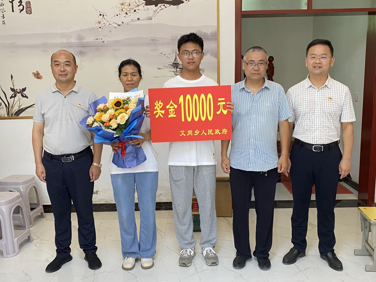 7月31日上午,西华县艾岗乡黄庄村“北大学子”董超祺家中,腰鼓阵阵,锣鼓喧天。艾岗乡党委书记姚广峰、乡长寇二勇带领乡班子成员和乡教育负责人前来慰问,祝贺董超祺考入了北京大学高等学府,并将1万元奖学金递到他手中。据悉,该乡另一名学子郭佳影也于之前被北京大学录取。目前全乡已有20名学生走进了985、211高等学府。
