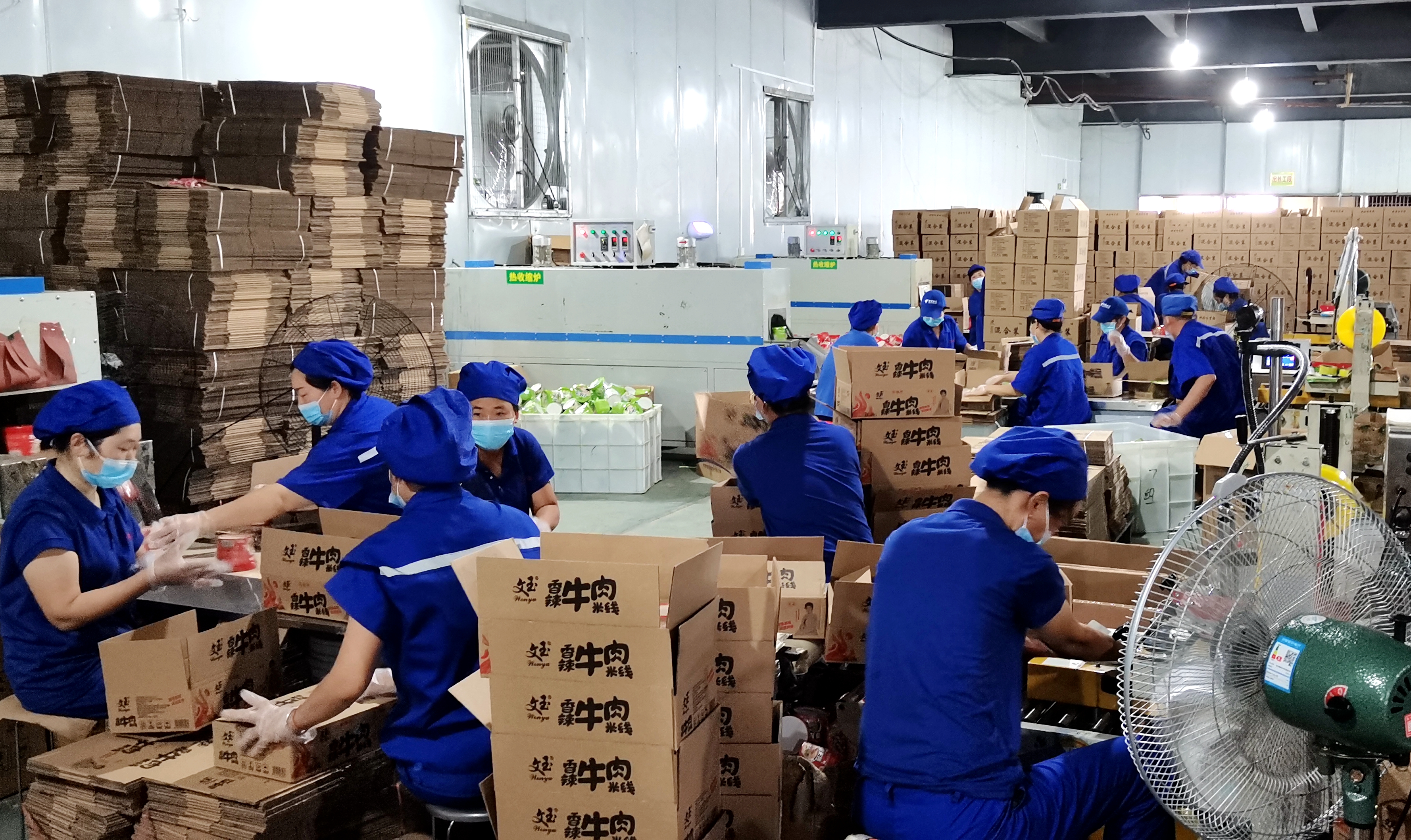 8月4日,记者在郸城县高新区看到,博欣生物、文玉食品、豫树食品等中小企业的产品,通过电商直播销往全国,“小食品”做成了“大产业”,年产值近10亿元。②10