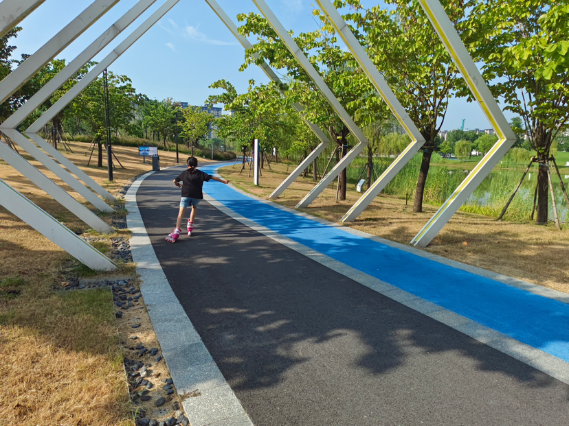 走进芙蓉湖公园,映入眼帘的是缤纷欢乐剧场、水上漂艺术走廊、休闲凉亭、儿童乐园......园内林木葱郁、芳草馨香、湖水潺潺、蝉鸣鸟语。公园里蜿蜒的小路连通路网,林荫小道贯穿全园,优美的景致吸引不少附近居民前来“打卡”。