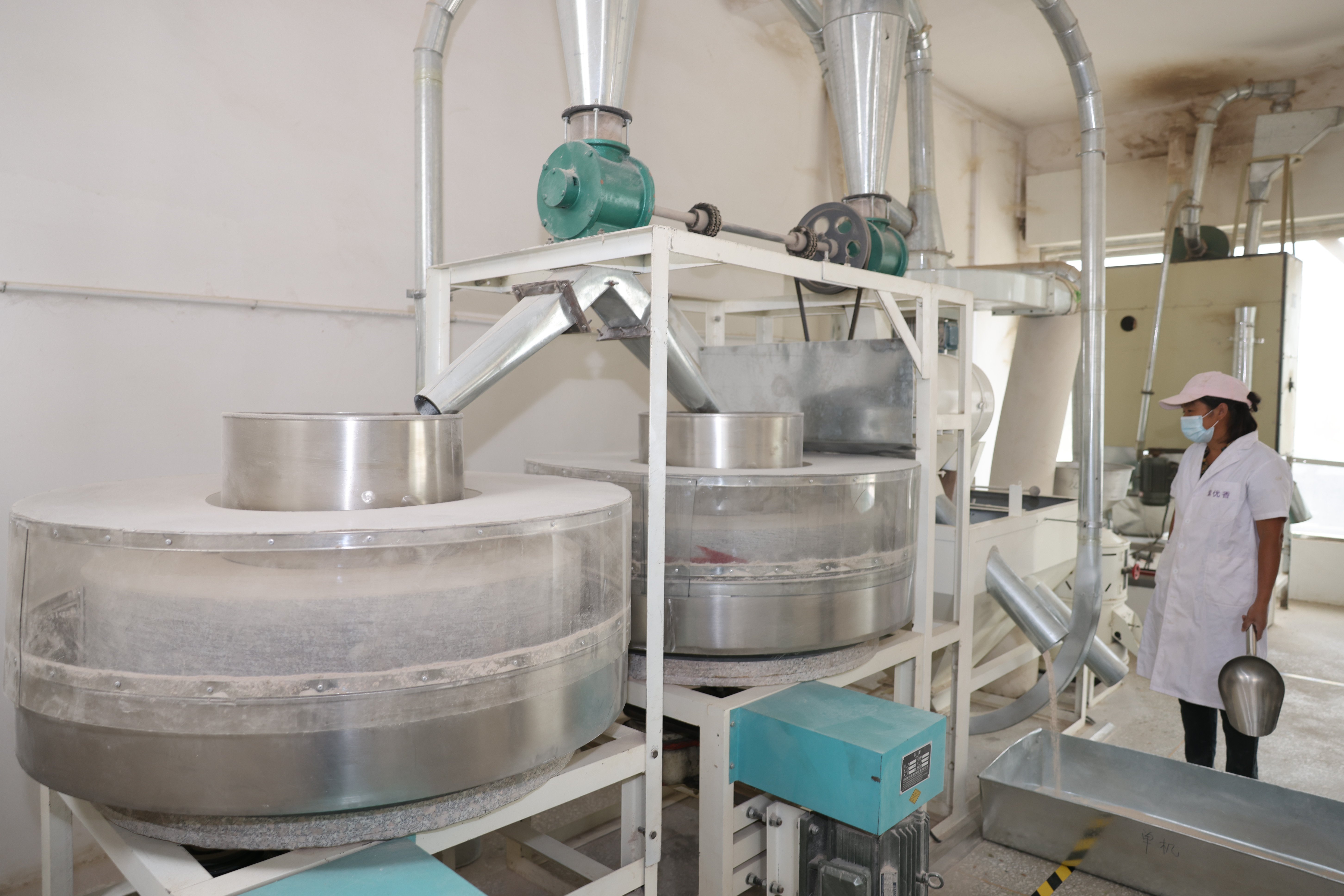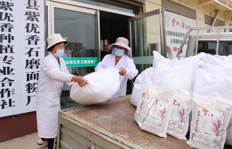 8月8日,郸城县汲冢镇,河南周口国家农高区稼丰农业科技公司紫麦面生产车间,石磨碾出紫色面粉。这是中国科学院遗传与发育生物学研究所农业资源研究中心研究员、小麦育种专家张正斌带领课题组培育并获得国家“973”计划支持的小麦新品种——紫优5号彩色功能小麦。张正斌在郸城县建设科技成果转化基地,坚持石磨加工,注册“紫优香”商标,抢占国内市场,实现全产业链生产。②10