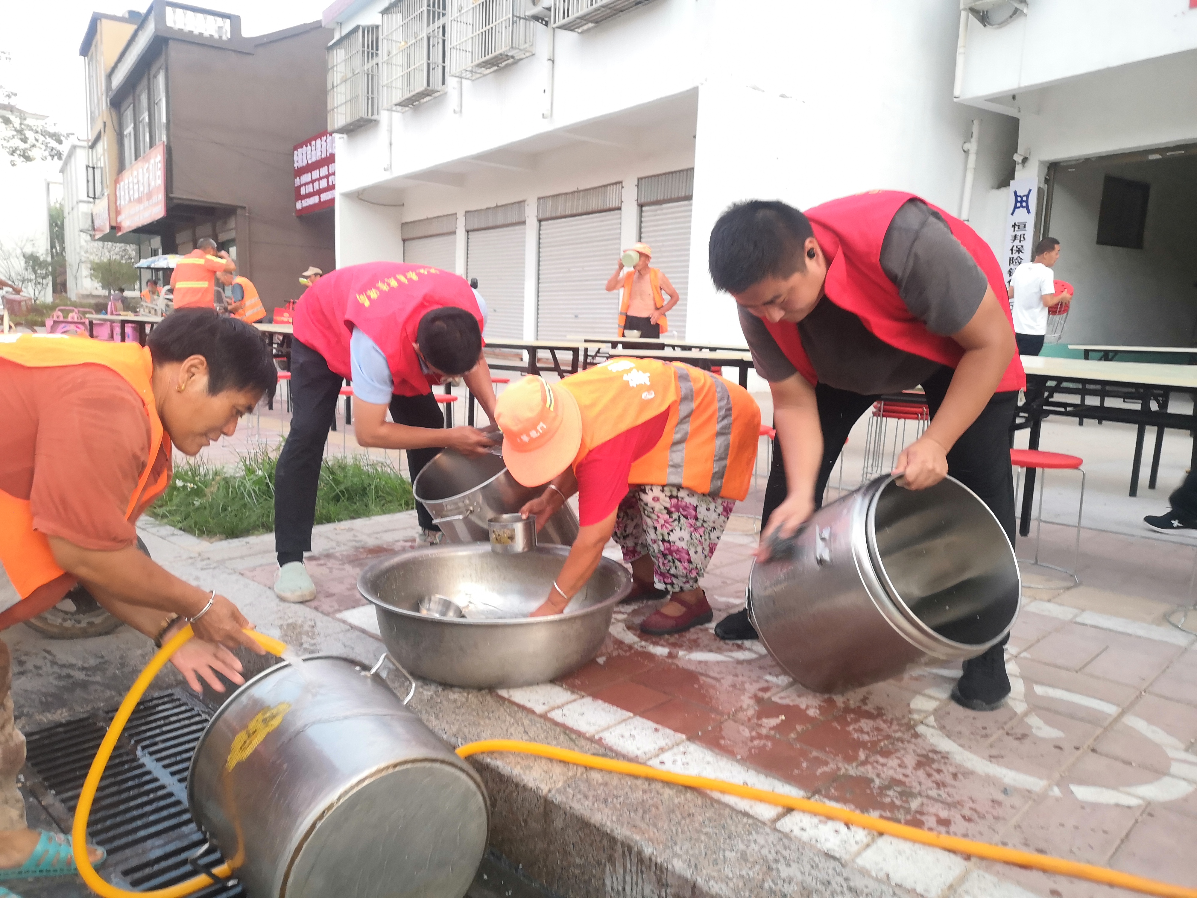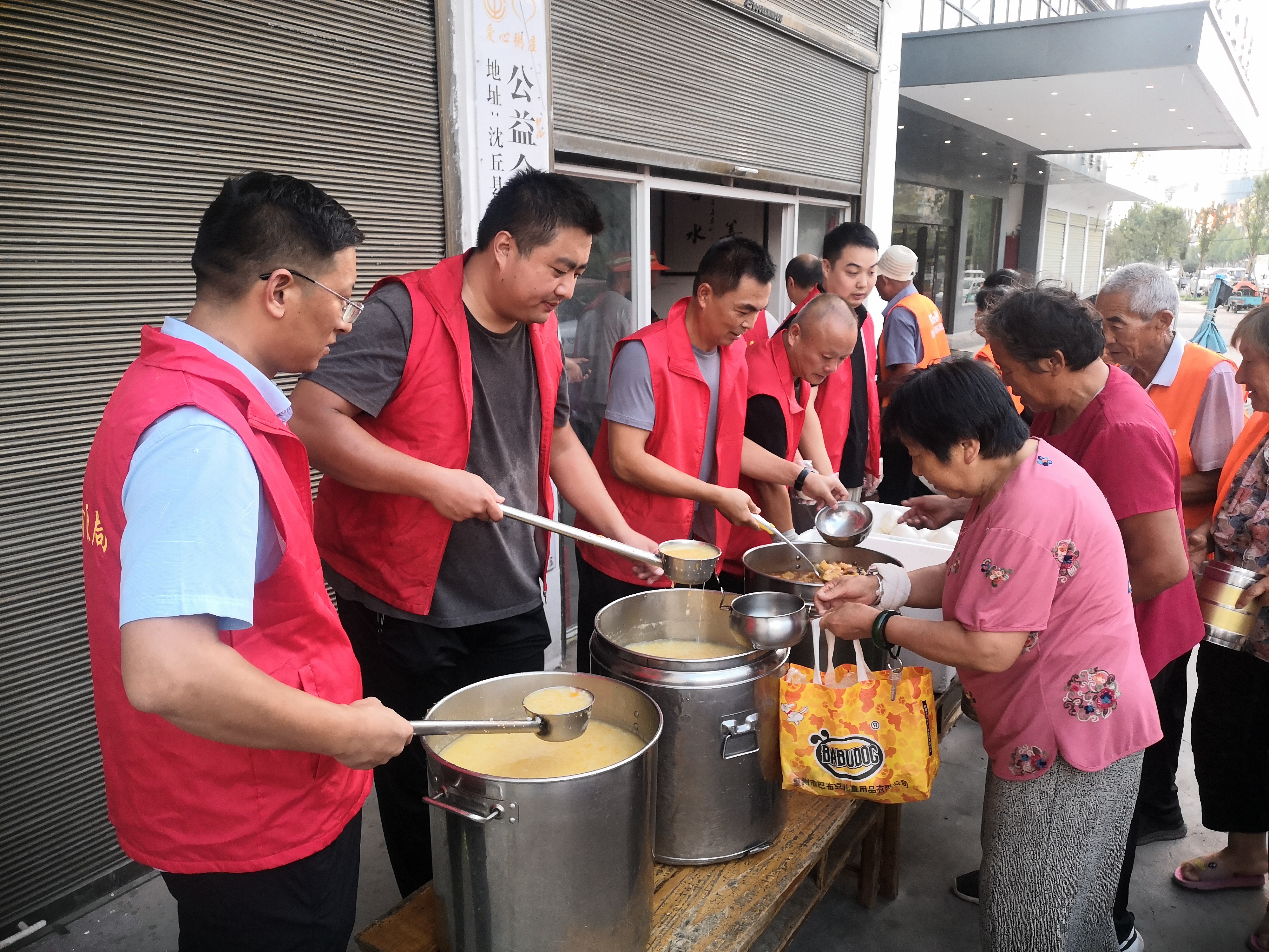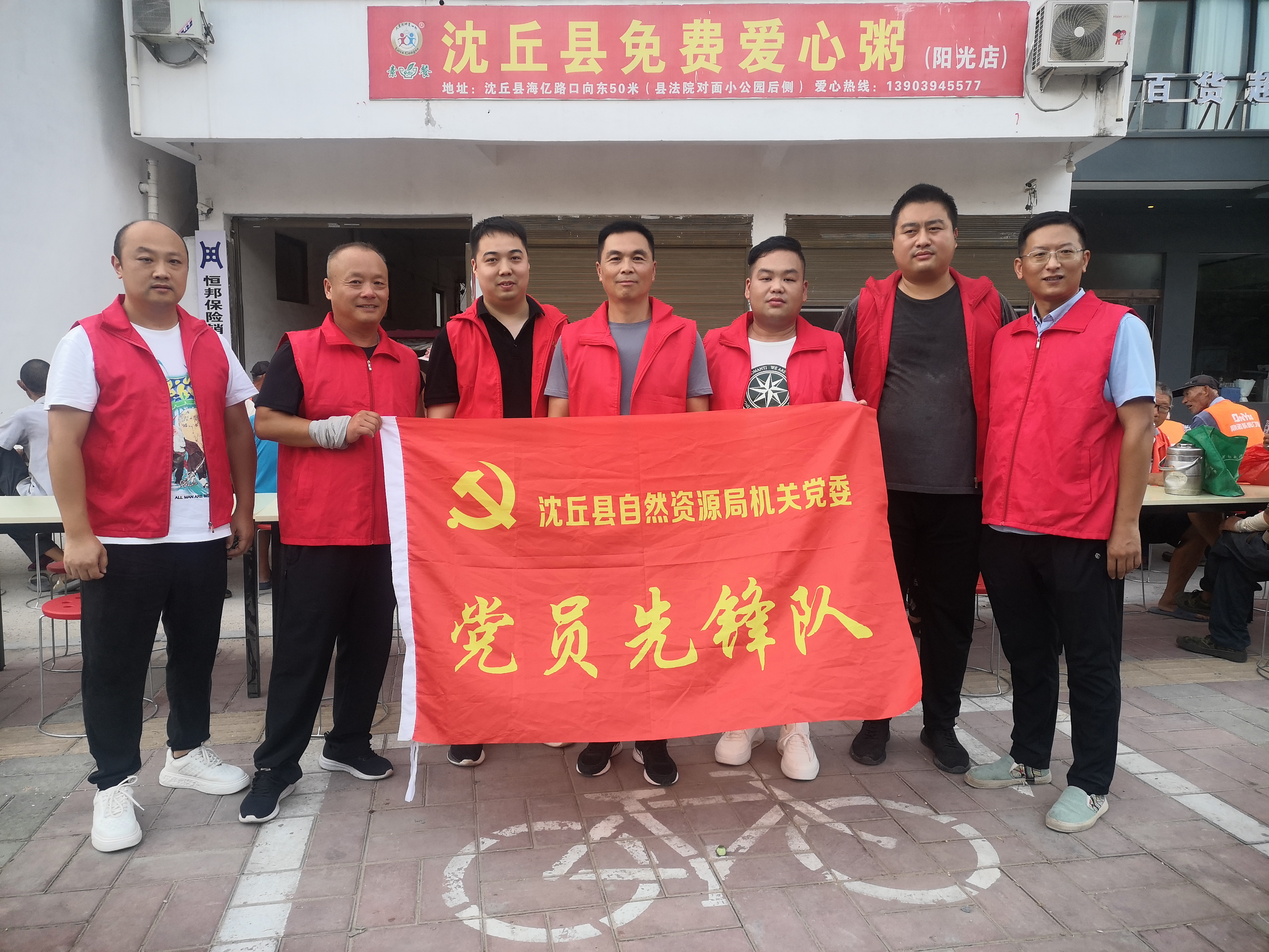 8月8日,沈丘县自然资源局党员先锋队再次来到县免费爱心粥(阳光店)开展志愿服务活动,为城市一线工作者——环卫工人送上爱心晚餐。