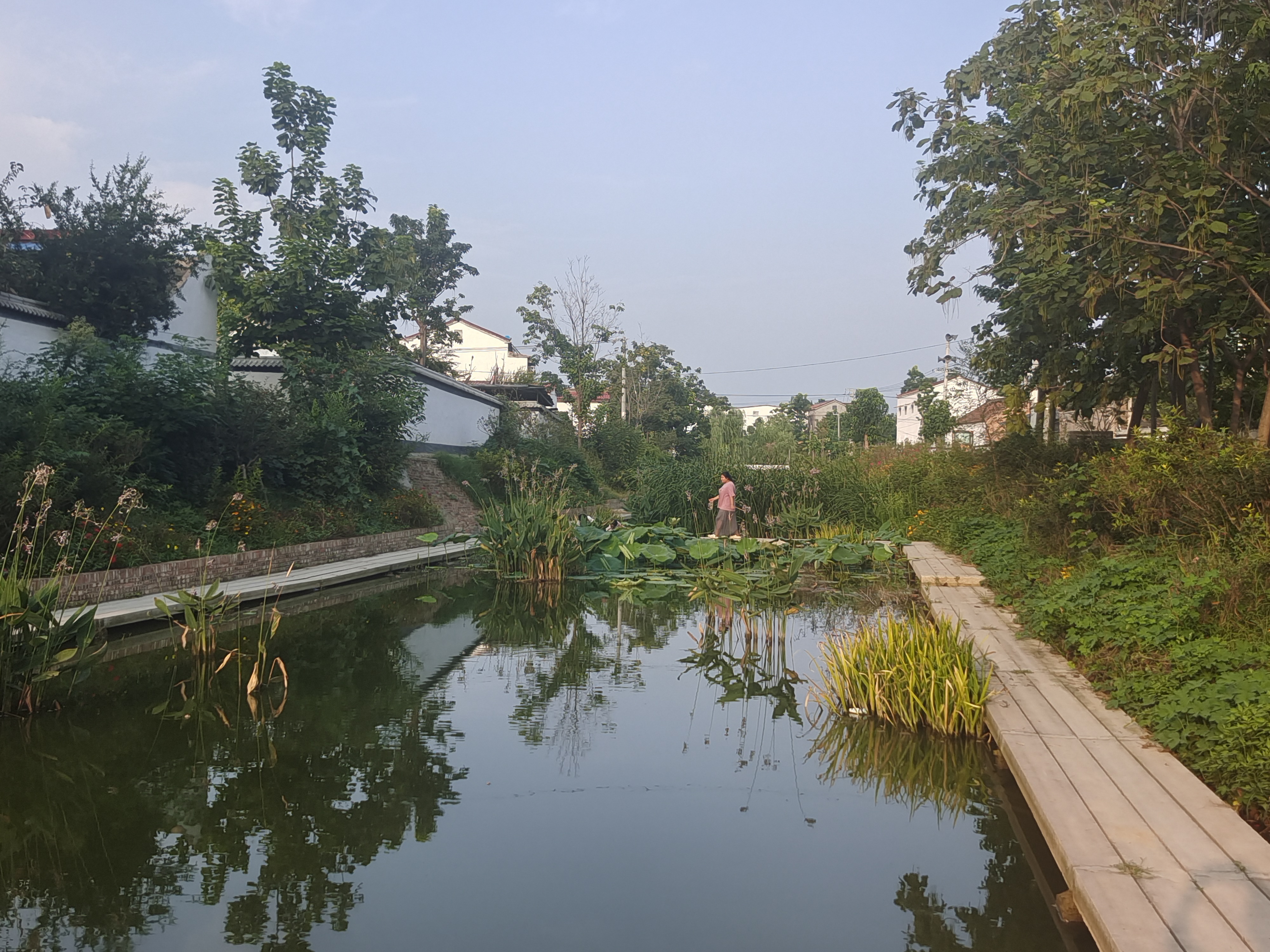 东黄村在治理近20亩坑塘时,清除完陈年垃圾后,没有狠挖水塘,而是听取群众意见,因地制宜,在坑塘周边浅水区域种上莲藕和蒲草等,砌上砖柱,铺上楼板作为亲水栈道。而今,茶余饭后的村民们,走近四周堤岸开满格桑花的坑塘,漫步于亲水栈道上纳凉,眼前荷叶田田,迎风摇曳,内心不油然生发出满满的幸福感。