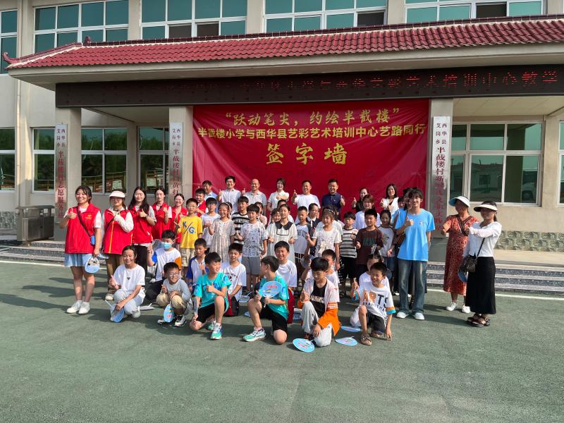 8月11日上午,在省委宣传部驻村第一书记马本胜的大力支持下,在县委宣传部新时代文明实践站的号召和组织下,西华县艾岗乡半截楼村小学与西华县艺彩艺术培训中心协作互助,开展一场别开生面的“跃动笔尖,书绘半截楼”暑期夏令营活动。