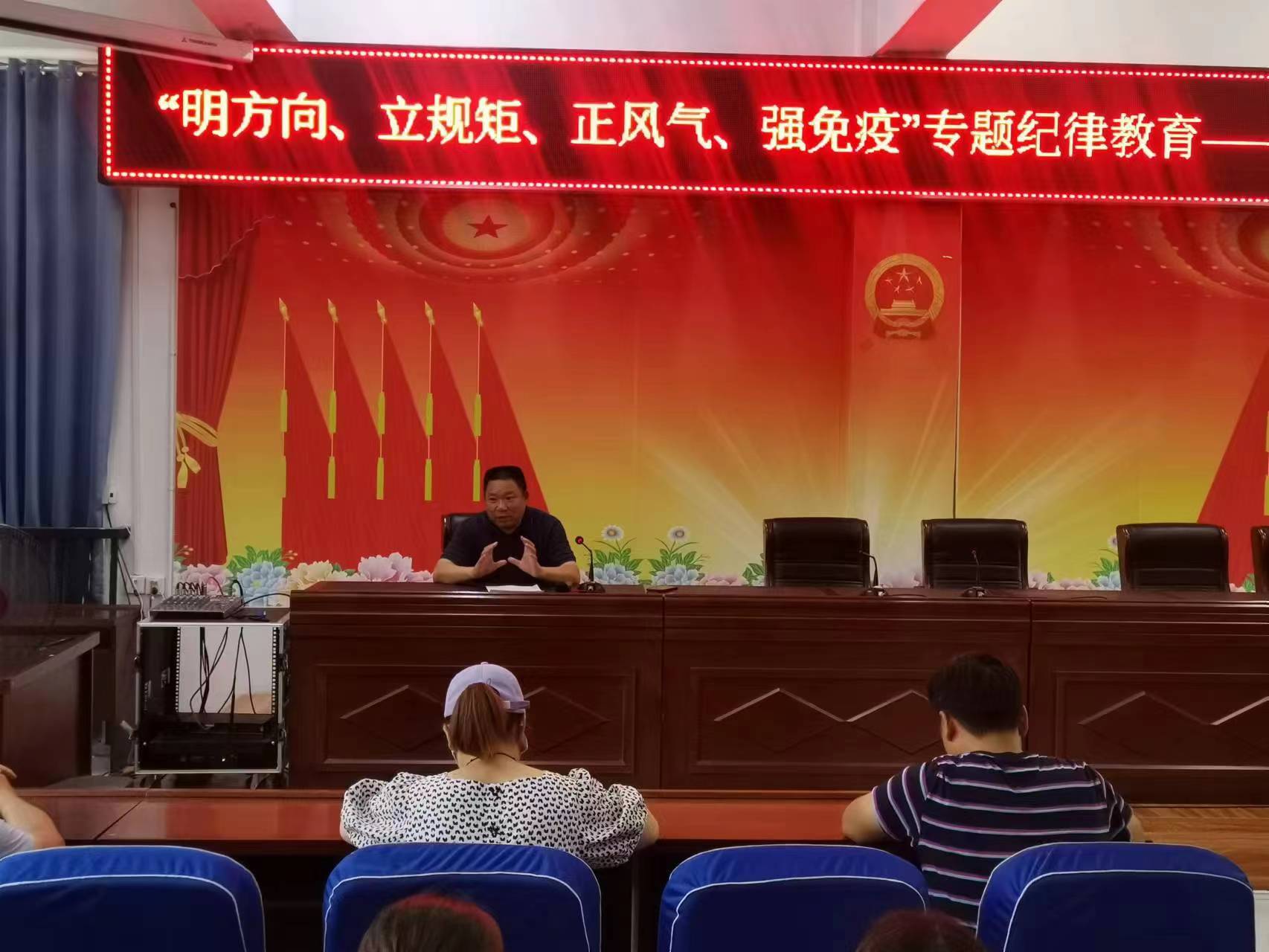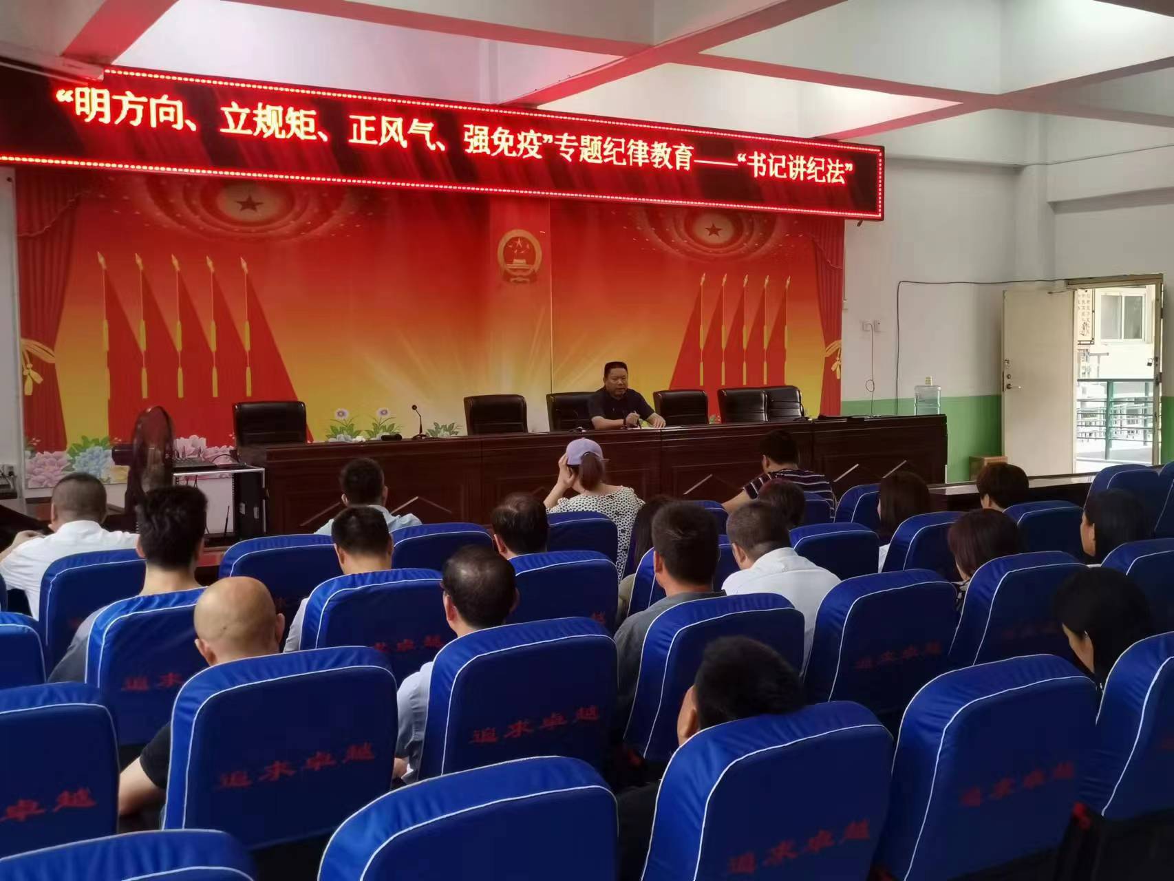 为进一步加强教师队伍管理,提高教育工作的规范化管理水平,营造爱岗敬业、乐于奉献的工作氛围,8月18日上午,鹿邑县第二实验中学组织开展了“明方向、立规矩、正风气、强免疫”专题纪律教育——“书记讲纪法”活动。本次活动由学校党支部书记兰海勇执讲,学校全体党员教师积极参与,共同学习专题纪律教育理念。
