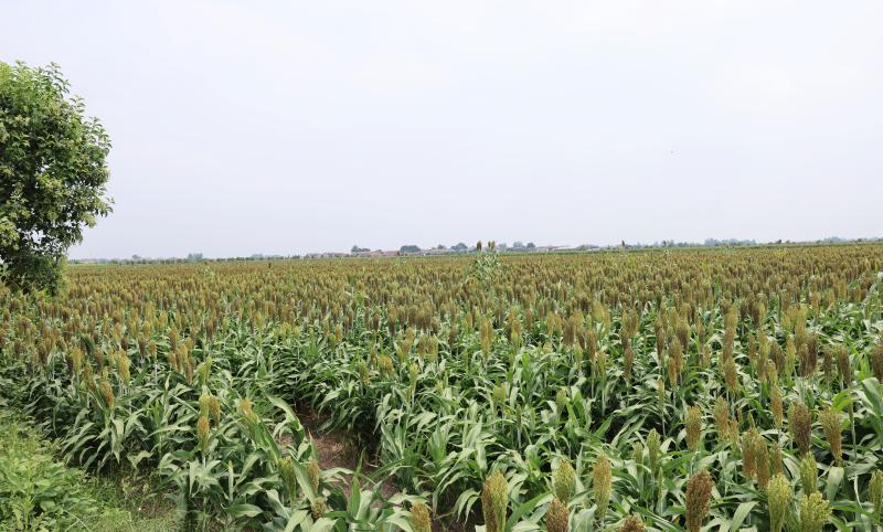 8月25日,记者在郸城县虎岗乡长营村看到,该村流转800多亩地种植的冀酿红高粱即将成熟,矮个、大穗,孕育丰收的希望。据悉,虎岗乡今年一共种植3000多亩红高粱,亩产值2400多元,成为推动乡村振兴的特色产业之一。
