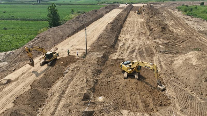 据介绍,周口市环湖路工程作为城市主干道市政道路项目,位于市城乡一体化示范区,起点为黄山路和庆丰东路交叉口,终点为环湖东路。该道路全长12.1公里,道路宽度60米,总投资14.59亿元。“目前,一期项目环湖南路和环湖东路已进入大面积路基施工阶段;环湖南路和环湖北路主路基纵向土方调配约31000方,完成总土方量的70%,路床成型已完成2.4公里。接下来,我们将增加人力、机械,加班加点,力争在8月底完成环湖南路、环湖东路和环湖北路路床基本成型的要求。”河南中州路桥建设有限公司环湖路工程项目经理张震说。