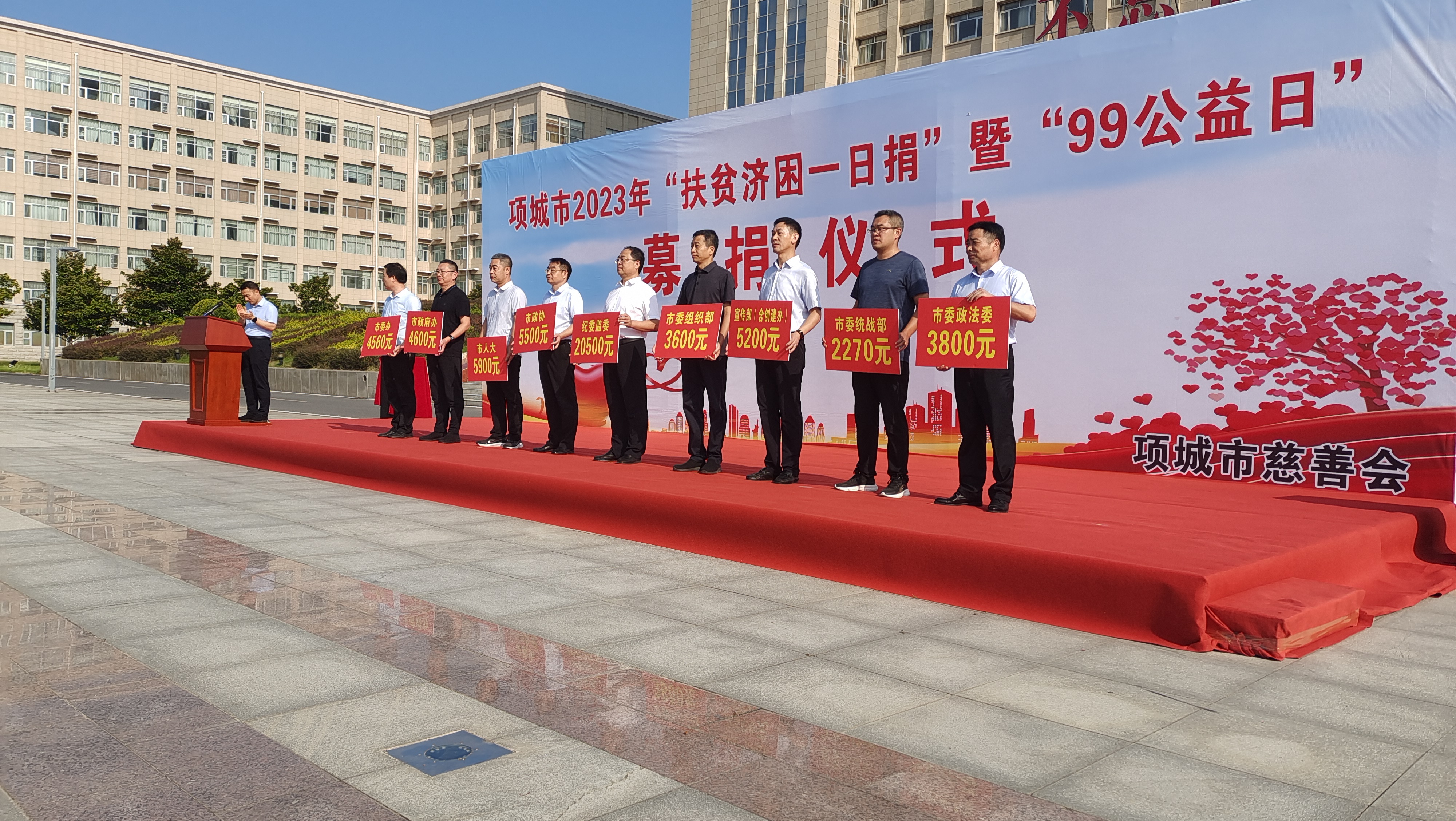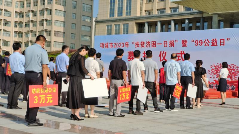 9月4日上午,项城市举行2023年“扶贫济困一日捐”暨“99公益日”募捐活动。项城市委书记赵丹,市长李飞,市领导张晓伟、侯自峰、刘娟、徐兴东、王拥军、陈强、娄二朋、张建威等参加活动并带头捐款,奉献爱心,以实际行动号召社会各界广行善举。