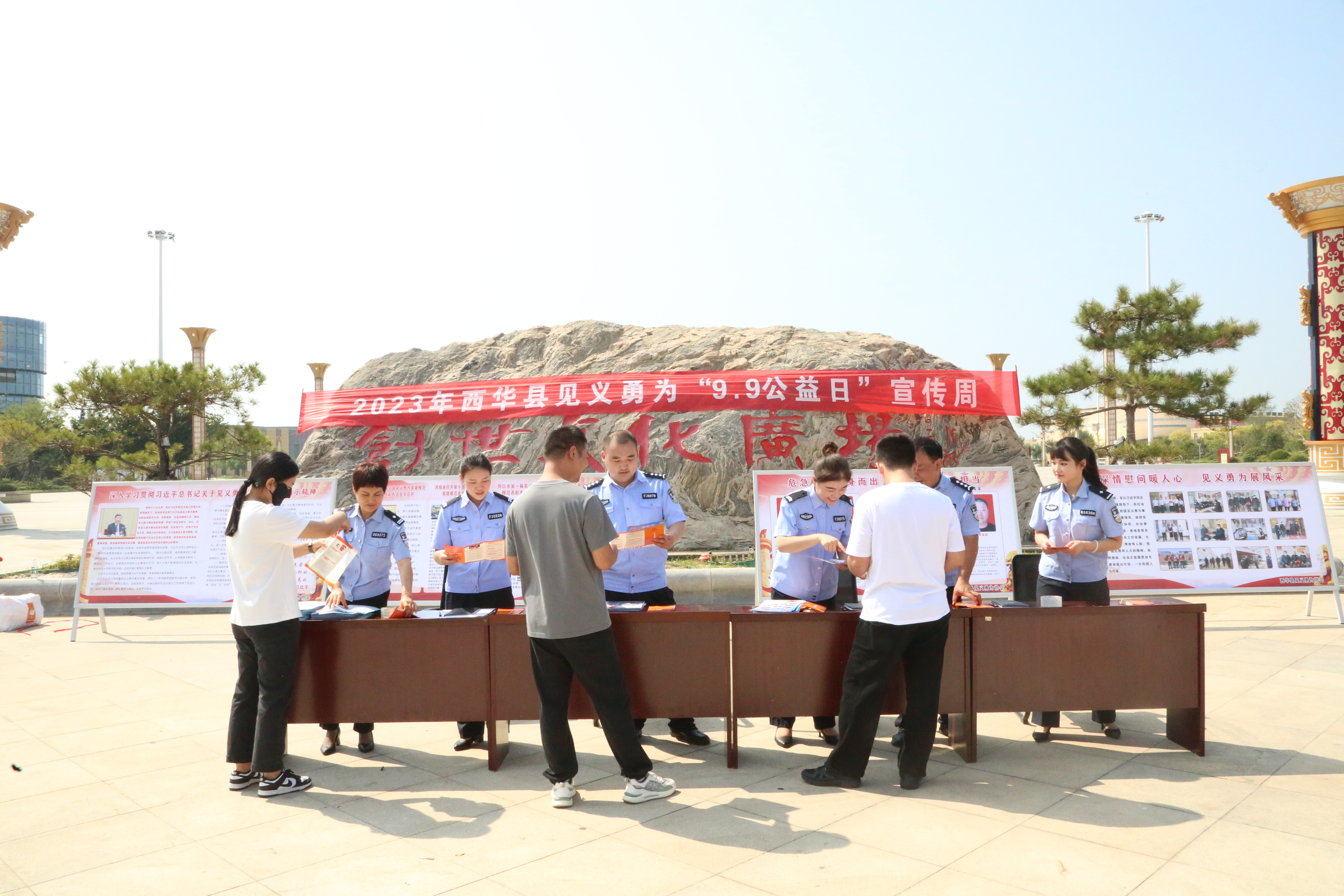 为传承中华民族传统美德,大力弘扬见义勇为精神, 9月5日上午,西华县见义勇为协会在创世文化广场开展“99公益日”宣传周活动。西华县副县长、公安局局长龙文钦,县见义勇为协会会长马明学,县公安局党委副书记、政委李亚鹏,县公安局党委委员、副局长邱亚龙,县见义勇为协会副会长李学勤、赵克飞、赵晓辉等相关工作人员及民警代表参加宣传活动。