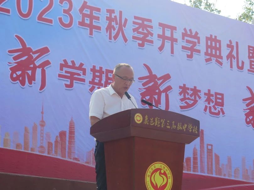 9月9日上午,鹿邑县第三高级中学召开2023年秋季开学典礼暨教师节表彰大会。县教体局领导肖文生,局网管中心主任刘桂丽,校长张光利、副校长翟胜勇,高中部校长陈明广、支部书记邱留见、教育教学督导员许小伟及全体教职工、学生参加会议。