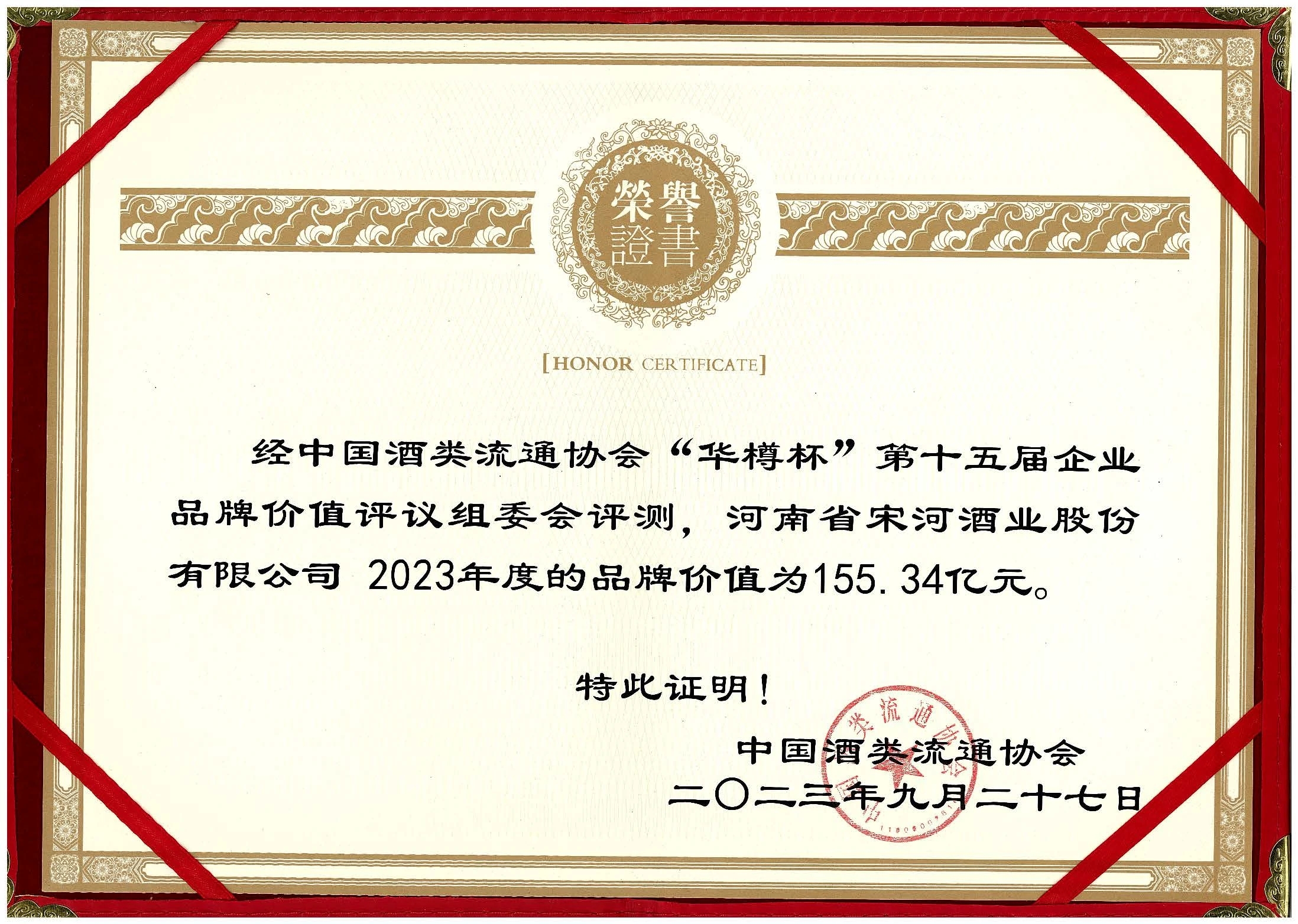 9月27日,第十五届中国酒类企业品牌价值发布会在北京国家会议中心隆重举办。经企业品牌价值评议委员会评测,宋河酒业2023年度的品牌价值为155.34亿元。作为河南唯一的浓香型中国名酒品牌,宋河酒业同时在会上斩获多项殊荣。