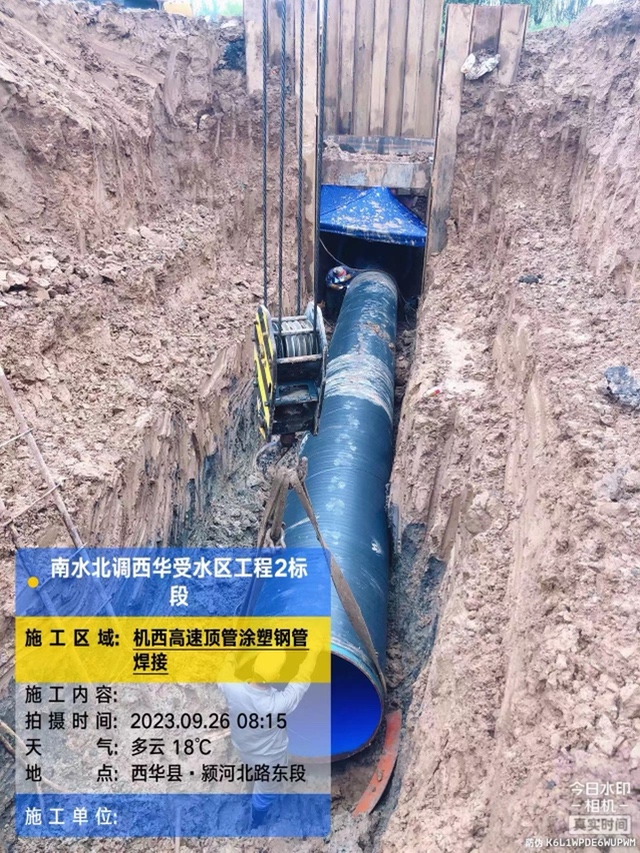 据了解,西华南水北调输水管线自取水口向北引水至西华调压塔,经调压塔调压后向北铺设管道,工程新建输水管道约24 km,现已铺设输水管道23公里,目前正在施工沙河拖管、贾鲁河定向钻扩孔及分水口连接工程,净水厂土建工程已完成85%,净水厂设备正在陆续进场,整个工程已进入收尾阶段,西华人民即将喝上优质的丹江水。