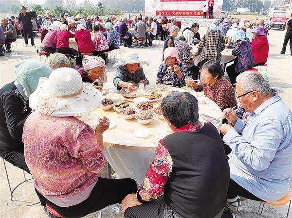 2025年10月29日(农历重阳节),暖阳高照。上午10时,沈丘县北杨集镇林寨村广场上,20多张桌子依次排开,老人们陆续入座,打扑克、拉家常,静候第十五届林寨村重阳宴开席。