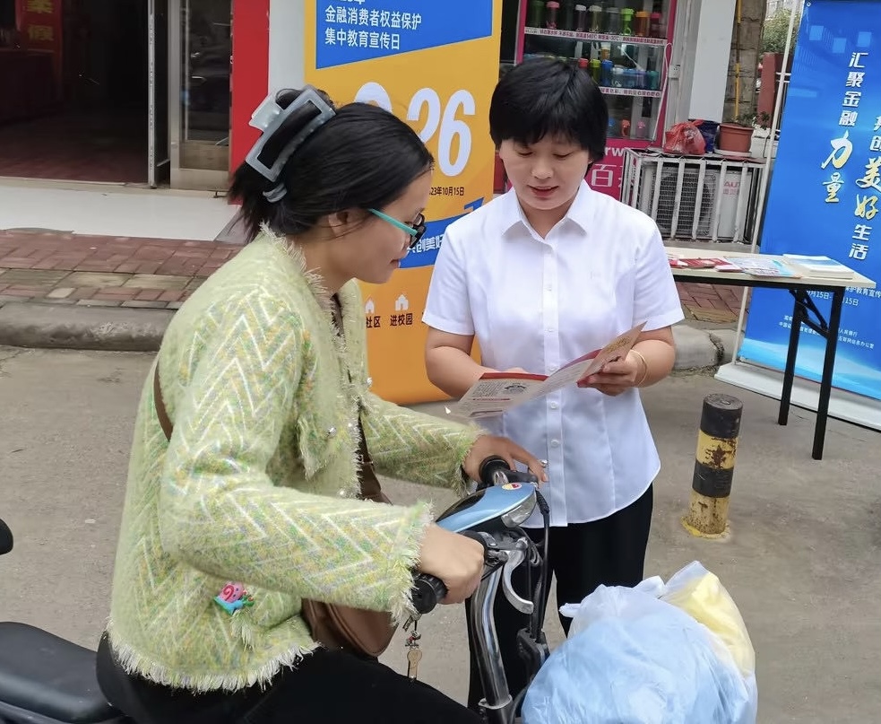 人保财险周口市分公司工作人员向居民发放宣传资料。近日,人保财险周口市分公司工作人员走进社区开展金融知识宣传活动,向居民普及防范电信诈骗、个人金融信息保护、防范非法集资等金融知识,提升居民对金融诈骗的识别能力,增强防范金融风险意识。通讯员 霍明 摄