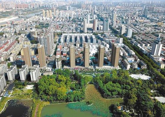 11月20日,无人机拍下的周口人民公园周边。近年来,我市在加快老旧小区改造上持续发力,高标准推进老旧小区改造工作 ,不断提升居民幸福指数。③5记者 沈湛 摄