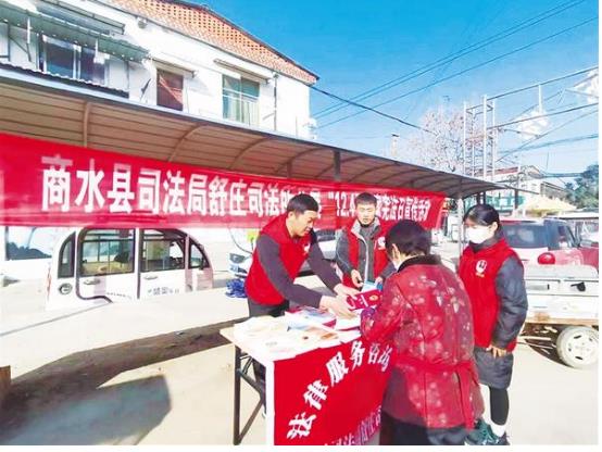 为弘扬宪法精神、传播法治理念、增强群众的宪法意识,12月4日,商水县司法局舒庄司法所积极开展国家宪法日宣传活动,在辖区主干道设置宣传台,向群众宣传相关法律法规知识,为群众提供法律咨询服务。记者 马治卫 通讯员 范有旺 摄
