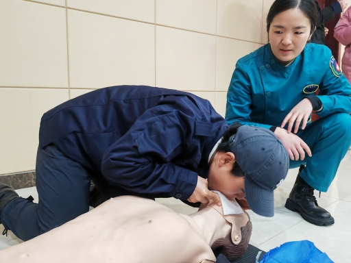 在随后的实际操作中,急救队员手把手给大家讲解和示范心肺复苏的科学要领,耐心解答学员们提出的问题,指出学员们在实际操作中的不足,规范急救细节每一个动作,像摆正体位、打开气道、心脏按压频率和力度、手掌叠放的方式都做了详细的讲解。在场学员认真聆听,并踊跃参与模拟操作。