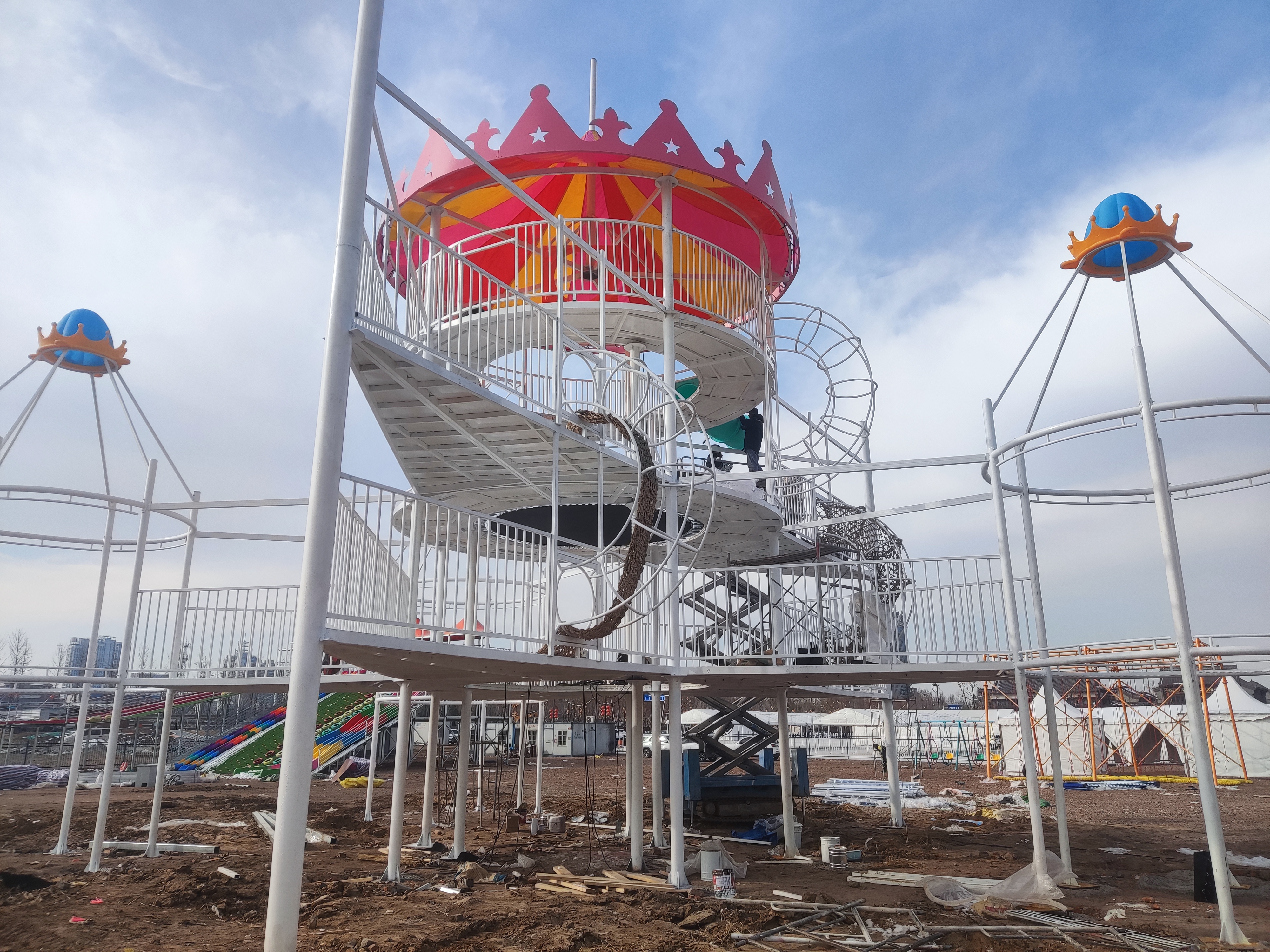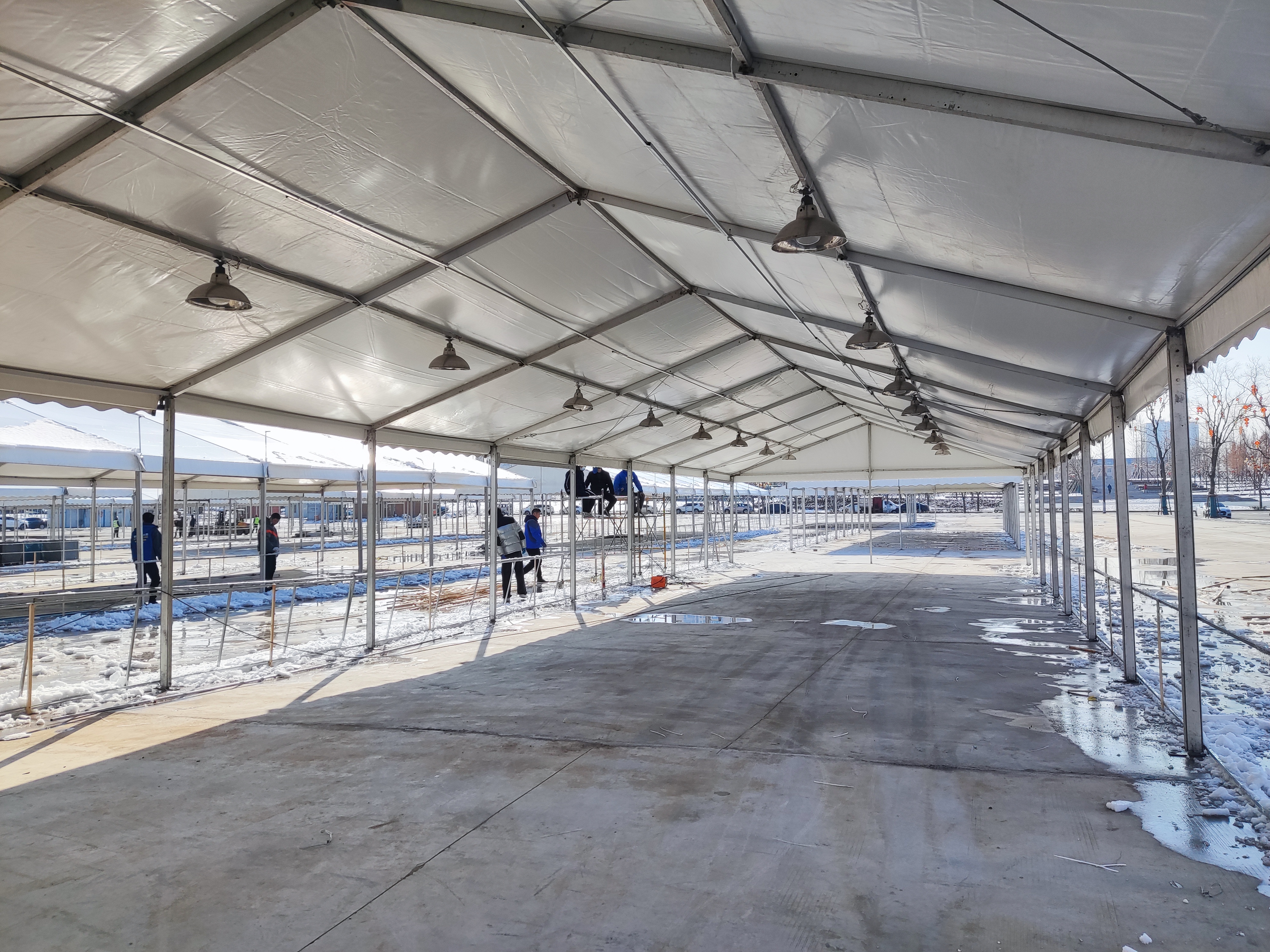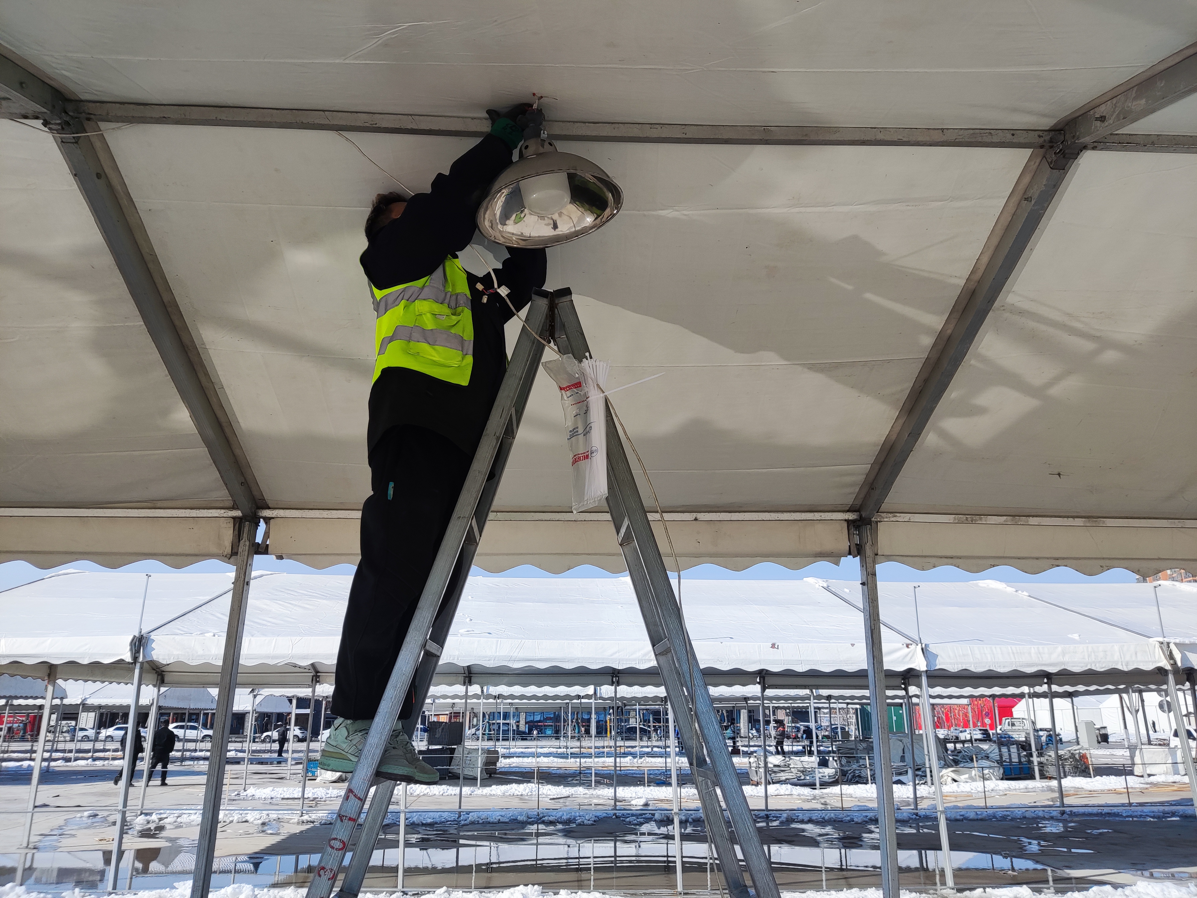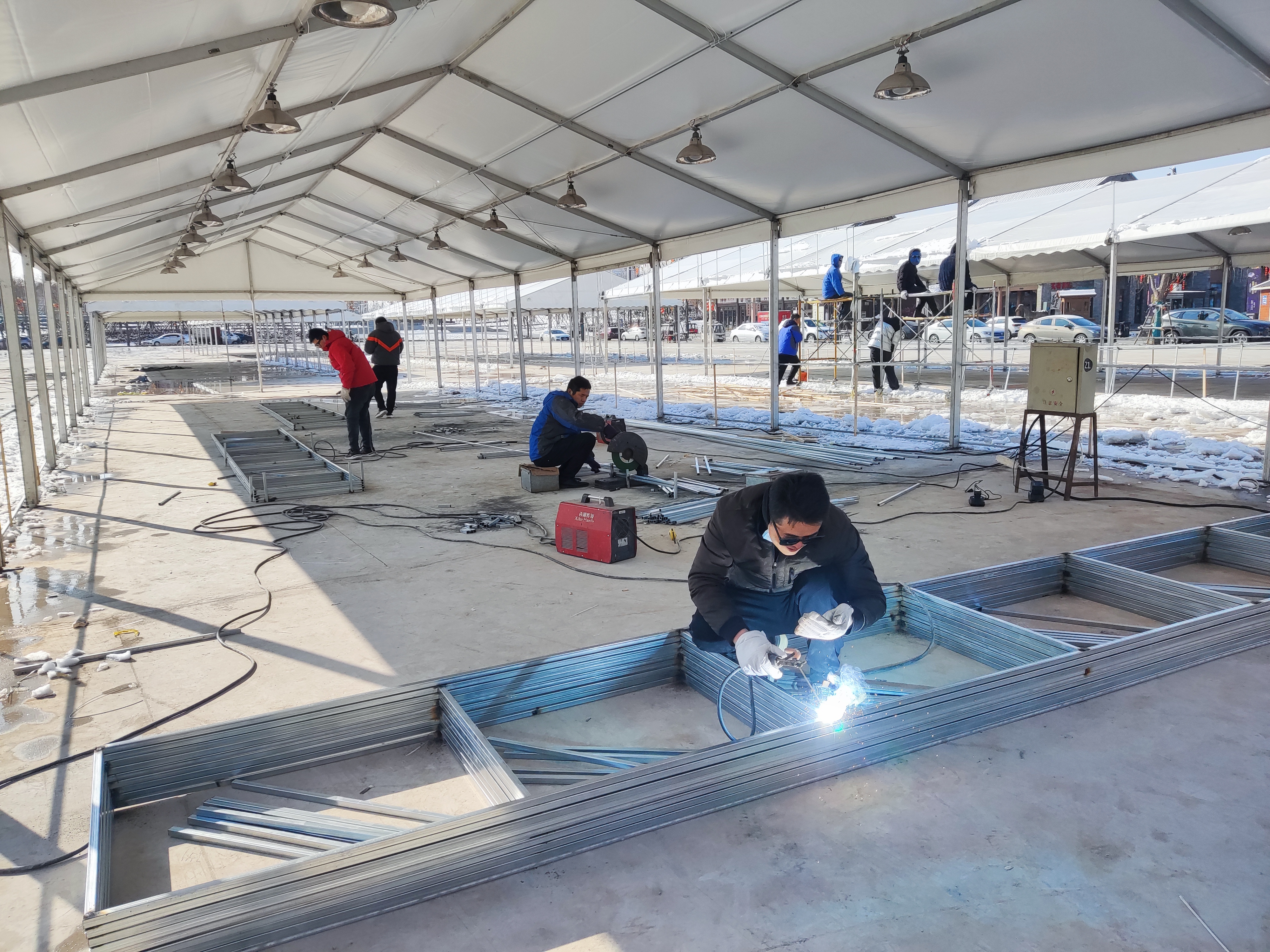 1月23日记者在现场看到,展区大篷内,工人正在做水电安装、焊接等扫尾工作。