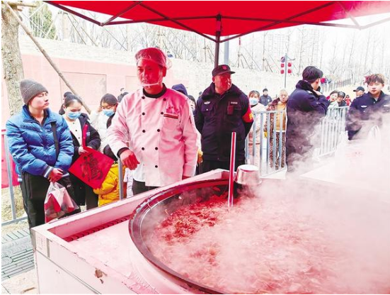 2月10日上午,备受瞩目的公益万人大锅菜在周家口南寨历史文化街区开锅。活动现场,市民们有序排队等候取餐,大家围坐在一起,品美食、话家常、迎新年,欢声笑语不断。
