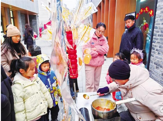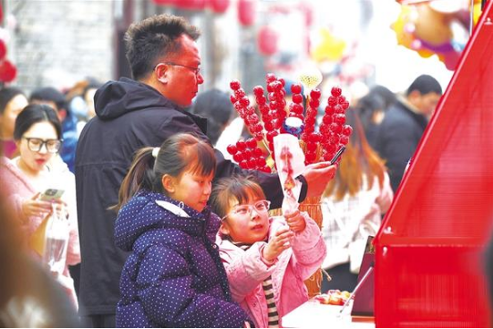 近日,周家口南寨历史文化街区击鼓开街,第三届“三川十馆·春会”同步启幕。街巷深处,两位小朋友在家长陪同下挑选冰糖葫芦,笑语盈盈。
