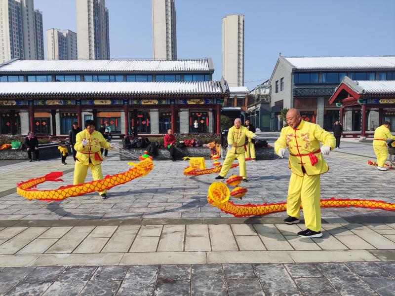 2月9日,在周口首届“三川十馆·春会”历史街区关帝庙广场上,精彩纷呈的划旱船、抖空竹、舞鞭陀龙等民俗表演节目向游客送去了春节的美好祝福。人们在春会的各个活动板块,赶大集、赏民俗,喜迎新年的到来。