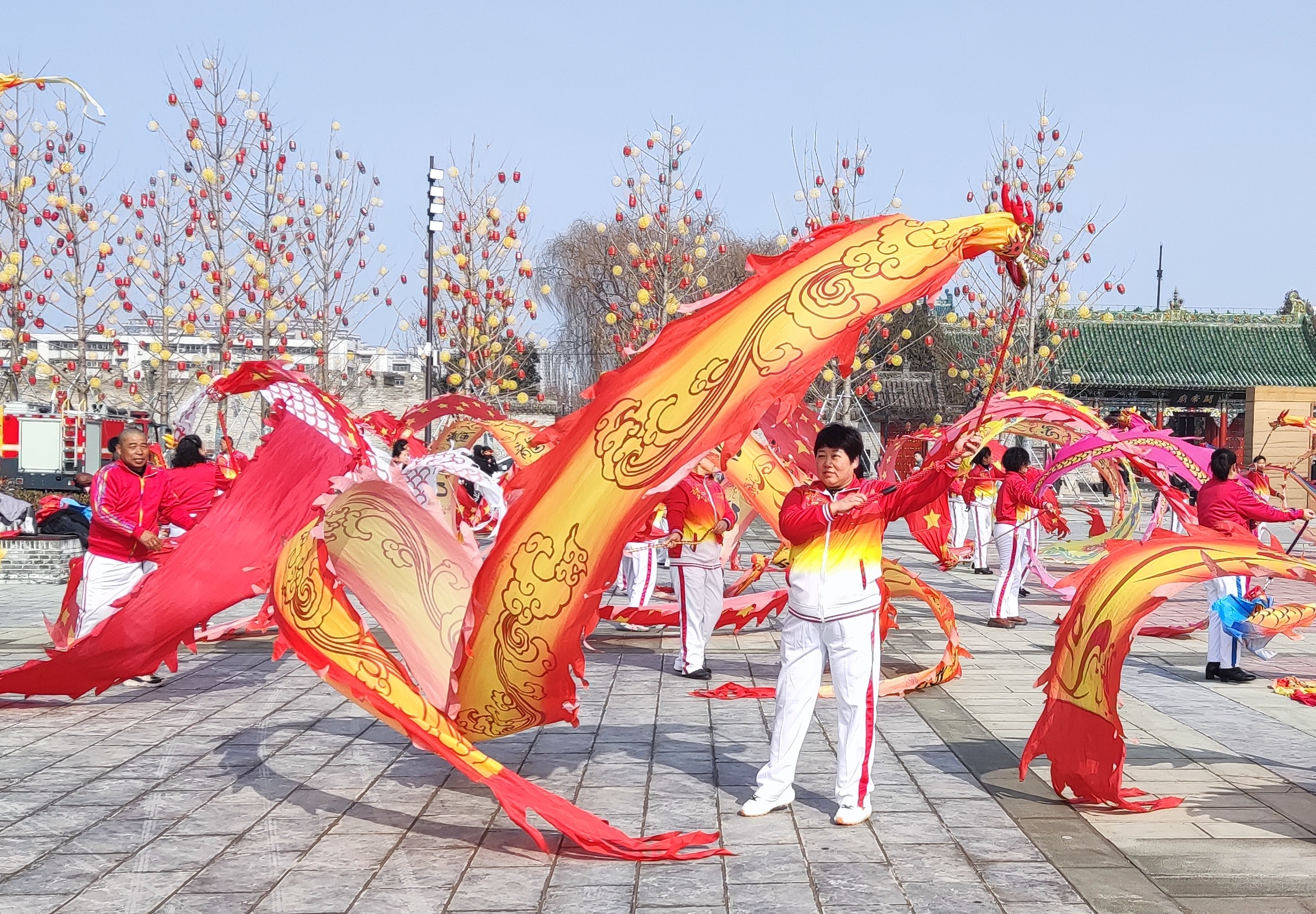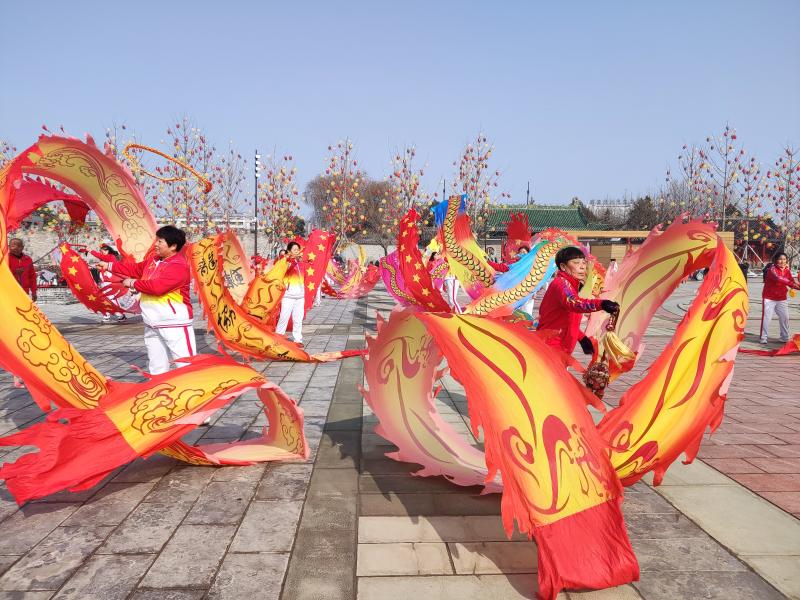 2月9日,在周口首届“三川十馆·春会”历史街区关帝庙广场上,精彩纷呈的划旱船、抖空竹、舞鞭陀龙等民俗表演节目向游客送去了春节的美好祝福。人们在春会的各个活动板块,赶大集、赏民俗,喜迎新年的到来。(记者 王吉城 摄)