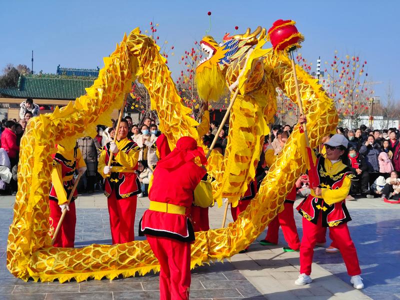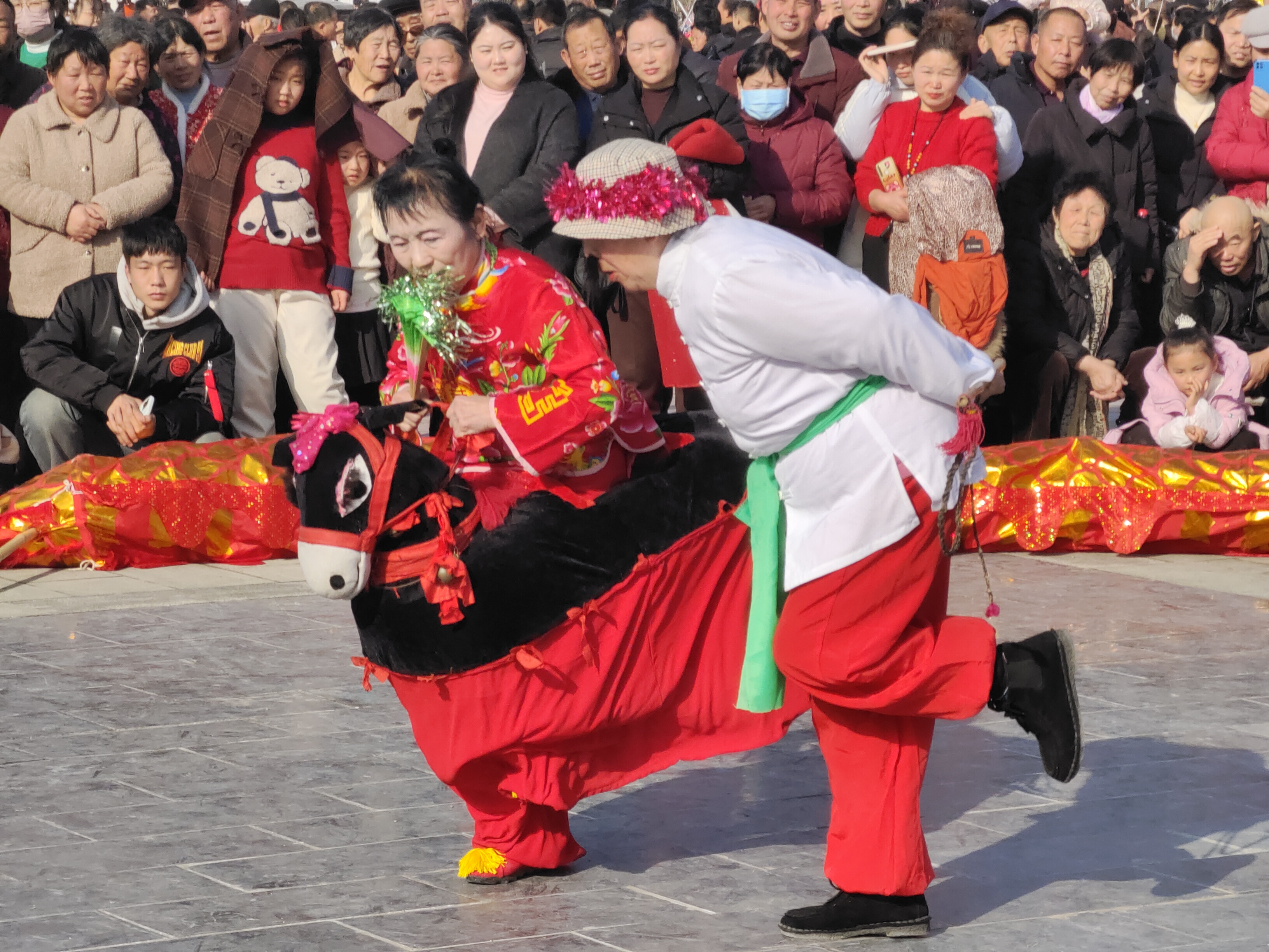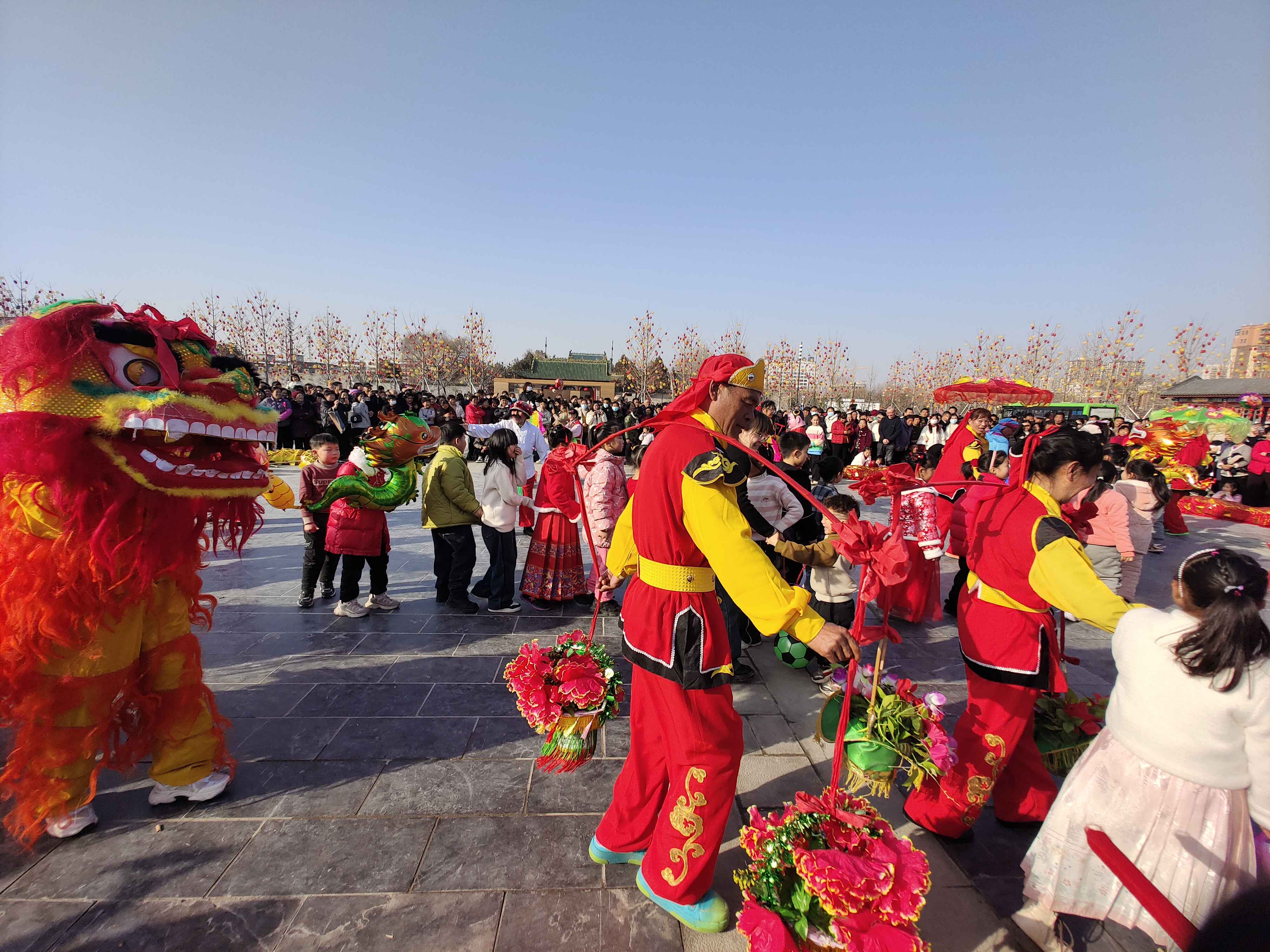 2月12日,在周口关帝老街周口市举办的“三川十馆·春会”上,来自周口各地民间艺人表演了舞狮、舞龙、骑毛驴等传统艺术,给周口市民带来了欢乐。(李建华 摄)