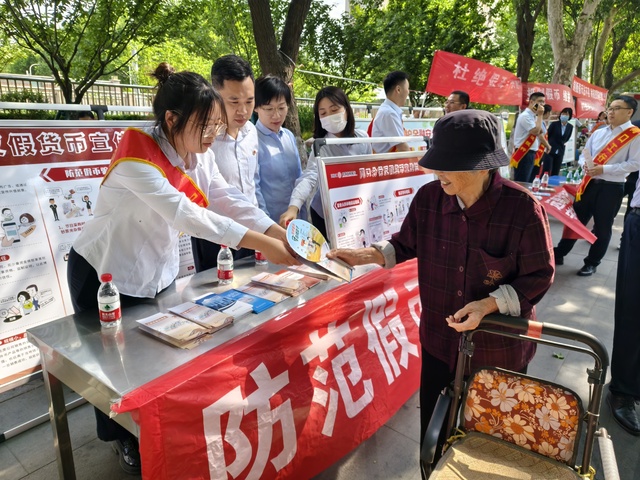活动当天,该行组织员工前往五一广场开展集中宣传,通过设置宣传咨询台,悬挂横幅,向群众发放反假币、爱护人民币和打击假币犯罪宣传折页,普及数字人民币知识,宣传人民币防伪知识和识别假币骗局,传递“防范假币,保护自我”理念。针对老年客户风险意识和识假能力不足问题,该行开展“一对一,手把手”现场教授假币“看、摸、听、测”等识别方法,切实守牢老年客户的“钱袋子”。