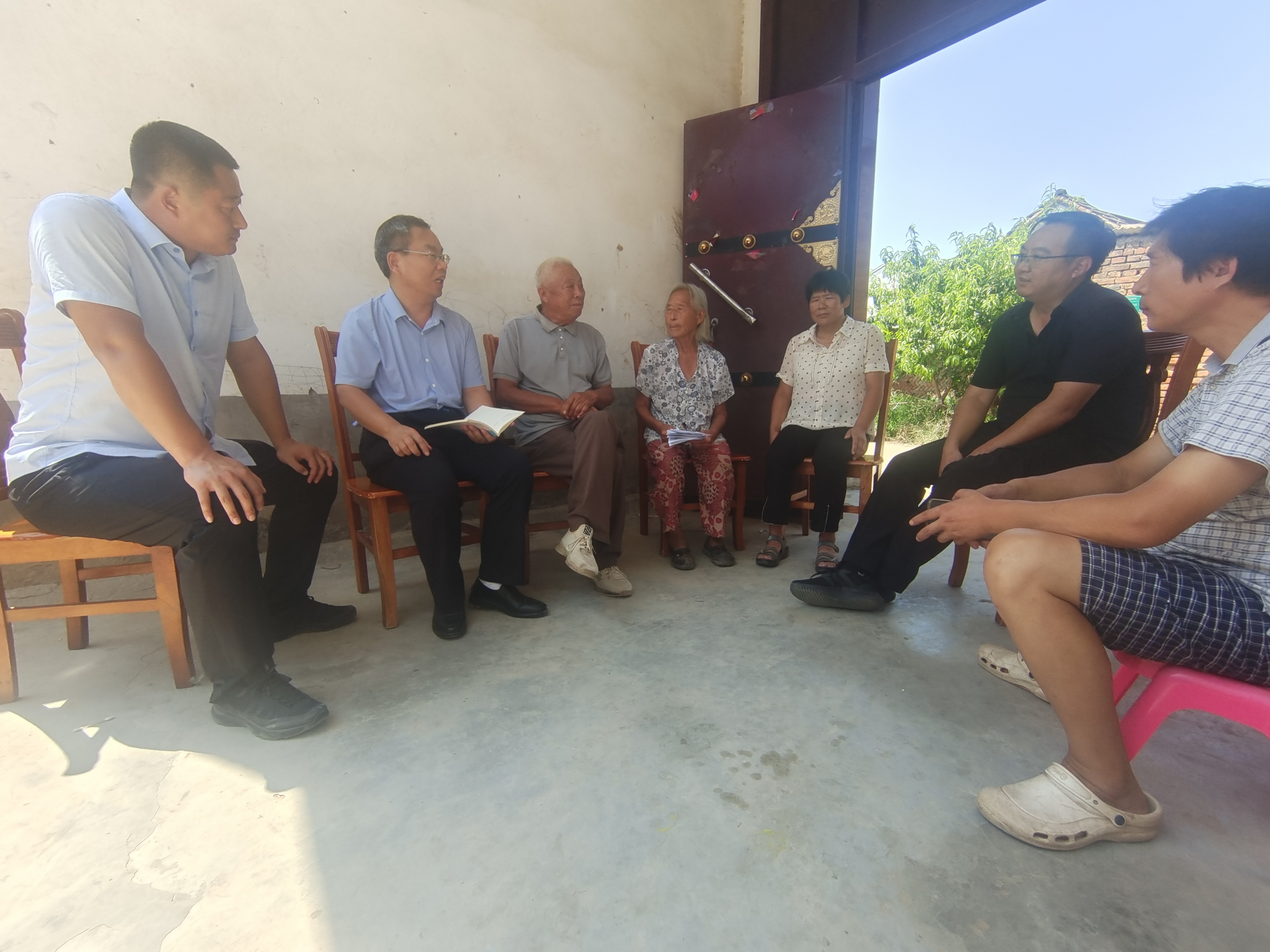 记者在与朱林广(左三)、邵玉梅(左四)等人唠嗑交流。