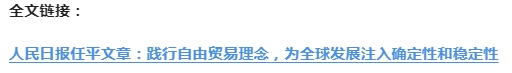 国际社会认为,中国堪称当今世界推动贸易和投资自由化便利化的最大旗手,是动荡世界中的稳定力量。