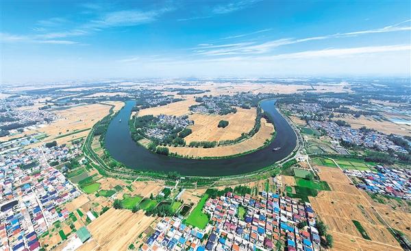 6月6日上午,在川汇区官坡村西侧,两艘货船沿沙河西行。沙河在这里绕了个弯,蓝天下,碧水、货船、村庄、农田宛如一幅油画,格外美丽,展现了中原港城周口的生态之美。