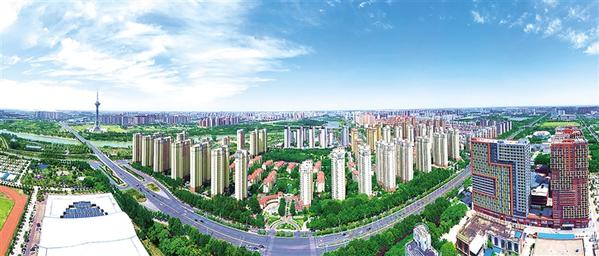 6月17日,蓝天白云下的周口中心城区格外秀美。近年来,我市深入贯彻习近平生态文明思想,坚定不移践行“两山”理念,坚持生态惠民、生态利民、生态为民,让市民在建设美丽家园中共享自然之美、生命之美、生活之美。