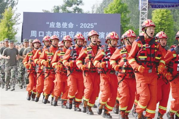 中石化周口石油分公司组建防汛应急队伍,调配防汛专用车及专业装备参与演练。