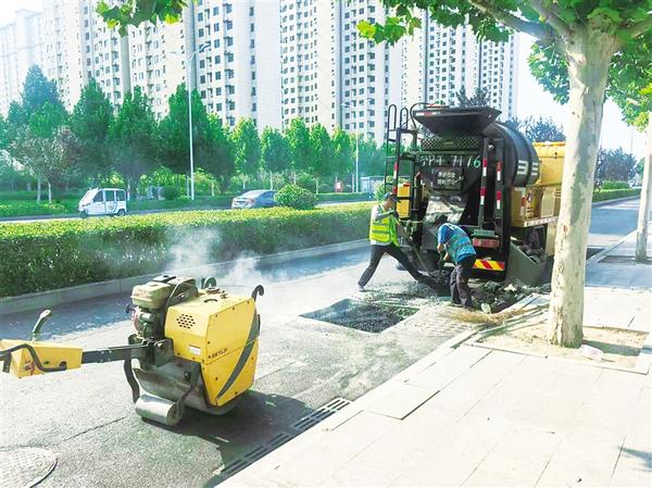 查明原因后,该中心当即调派专业施工队伍前往处置。施工人员先在周边架设隔离护栏与警示标识,随后按规范流程作业:拆除破损井盖、对松动的井沿周边进行二次加固、用沥青将其夯实覆盖。值得关注的是,施工人员并未局限于单点修复,而是沿中原路延伸排查了1公里范围,确保同类隐患“一网打尽”。