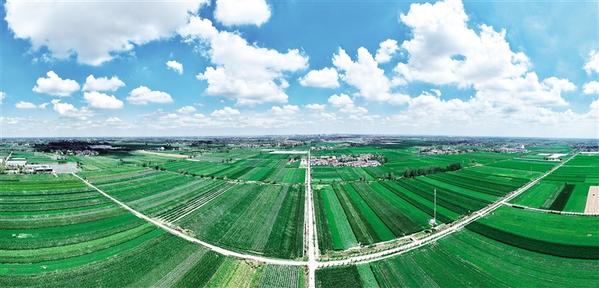 7月22日,航拍镜头下的郸城县高标准农田示范区绿意盎然、如诗如画。今年以来,该县通过实施沟渠连通工程,确保每块田地旱能浇、涝能排,为粮食丰收奠定坚实基础。 记者 徐松 摄