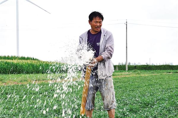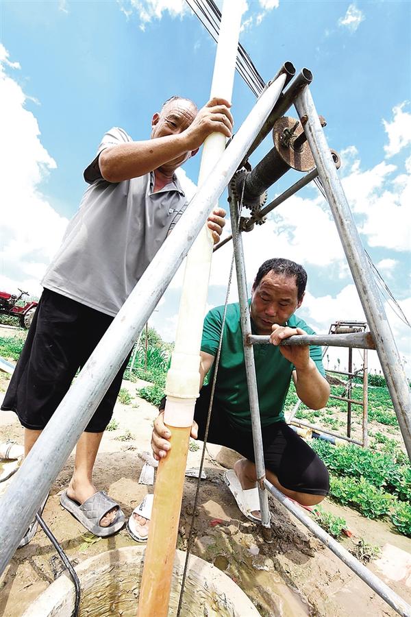 7月27日上午,淮阳区曹河乡赫营庄村村民正在田间灌溉。为应对持续高温干旱天气,我市全力开展抗旱保秋。 记者 梁照曾 摄
