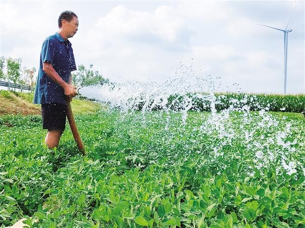 连日来,商水县郝岗镇立足实际,把抗旱保秋工作作为当前一项刻不容缓的政治任务来抓,保障机井安全用电,疏通沟渠,引水到田,切实筑牢抗旱保秋防线。图为群众在田地里浇水。 通讯员 吕耀光 吕培博 摄