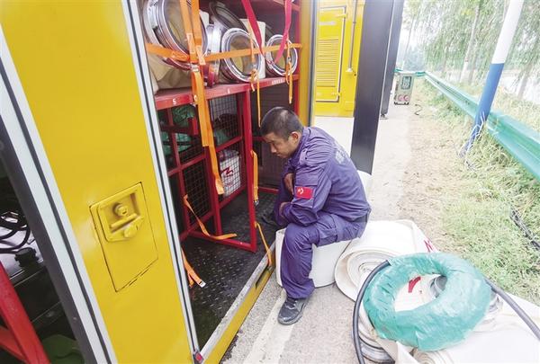 周口市应急管理局委托,近日,周口曙光救援队出动11名队员携带应急排水设备赴淮阳区豆门乡开展抗旱保秋作业,将沙颍河水引入当地沟渠中,为村民抗旱保秋提供水源。 记者 王凯 摄