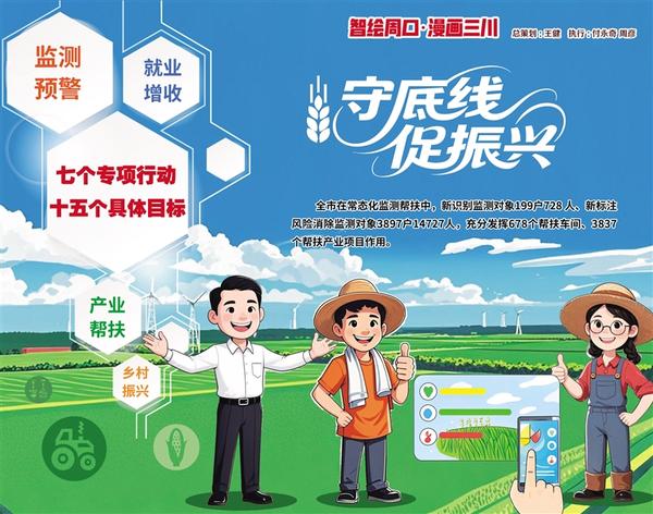 今年以来,我市农业农村系统以实施“七个专项行动”强基础、落实“十五个具体目标”明责任,着力构建巩固拓展脱贫攻坚成果同乡村全面振兴有效衔接的立体网络。全市在常态化监测帮扶中,新识别监测对象199户728人、新标注风险消除监测对象3897户14727人,充分发挥678个帮扶车间、3837个帮扶产业项目作用,稳定脱贫人口就业规模29万人,实现监测预警精准化、产业帮扶长效化、就业增收稳定化,乡村全面振兴基础持续夯实。记者 付永奇 周彦 文/图