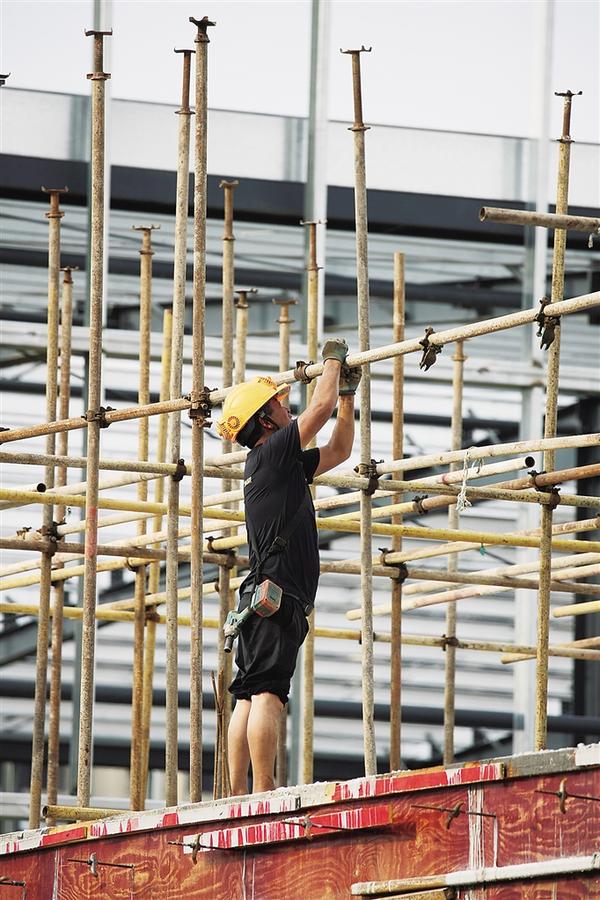 上图:8月8日,在淮阳区河南乐帮烘焙器具有限公司年产60万套食品智能设备生产项目建设工地上,一名工人正在紧张施工。