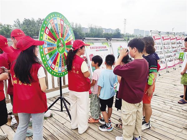 8月14日,周口中心城区沙颍河南岸周口大道桥东侧,一场以“垃圾分类、家庭时尚”为主题的亲子护河志愿活动在此开展。全国生态日将至,我市环保志愿者与20余个家庭携手,清理河道垃圾,用实际行动守护母亲河,传递环保新风尚。 记者 刘华志 摄