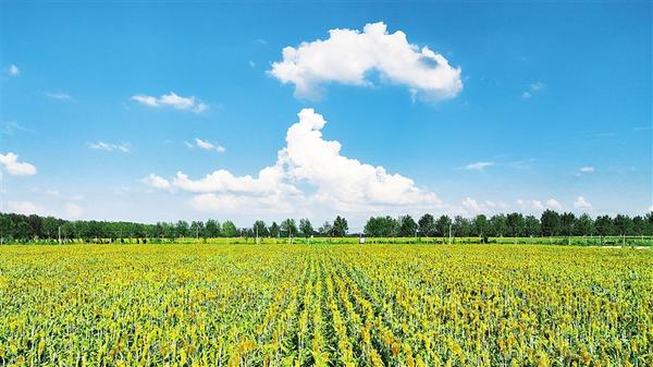 8月17日,扶沟县蓝天白云下的秋季作物生机勃勃,孕育着丰收的希望。黄金峰 摄