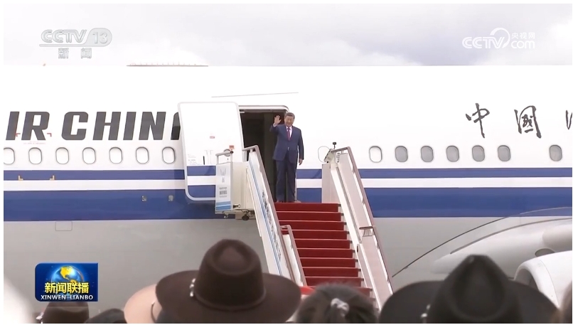 12时许,习近平乘坐的专机在贡嘎机场降落,等候在停机坪的西藏各族各界群众热烈欢呼。习近平走出舱门,向欢迎群众挥手致意。
