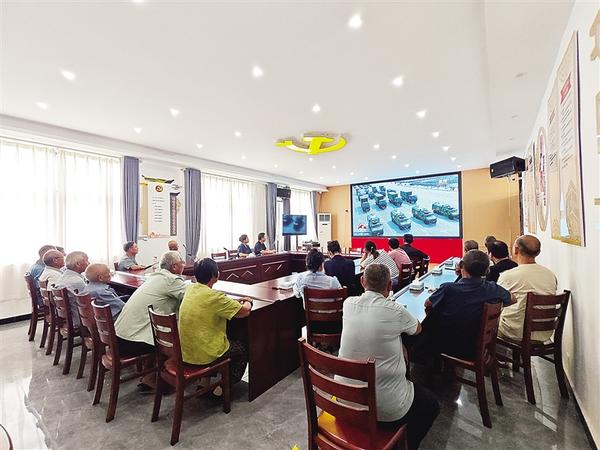 9月3日上午,淮阳区王店街道王楼村组织群众观看阅兵盛况。 记者 刘俊涛 摄