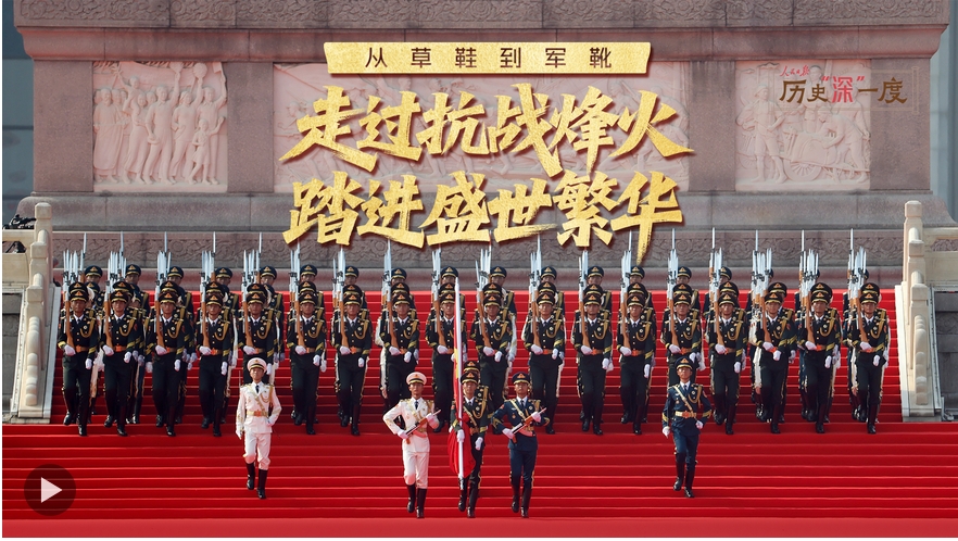 九三阅兵现场,一双双军靴见证“中国排面”,足音中回荡着人民军队保家卫国的壮志豪情。当年,我们以草鞋赴国难,寻找黎明的曙光;如今,步履所至,皆是山河无恙。